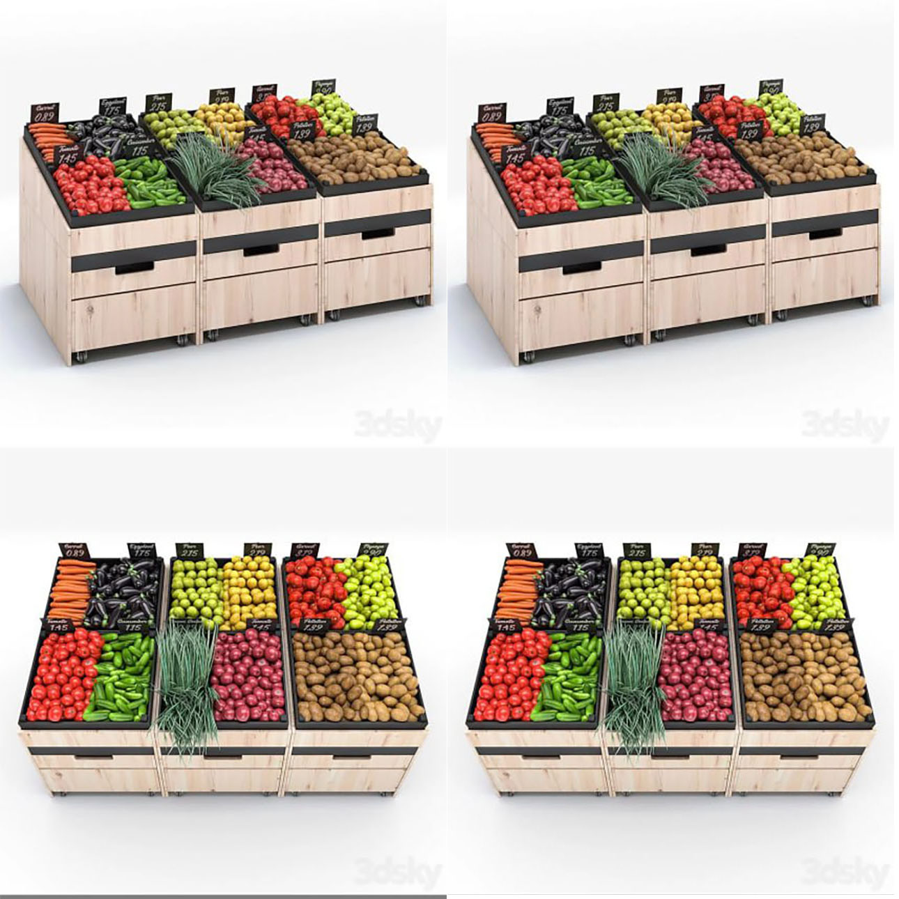 This 3D model showcases a detailed breakdown of various vegetables in a kitchen setting. It is ideal for interior designers, architects, and anyone looking to enhance their projects with realistic 3D elements. The model is created in 3DS MAX and offers a high level of detail and realism.