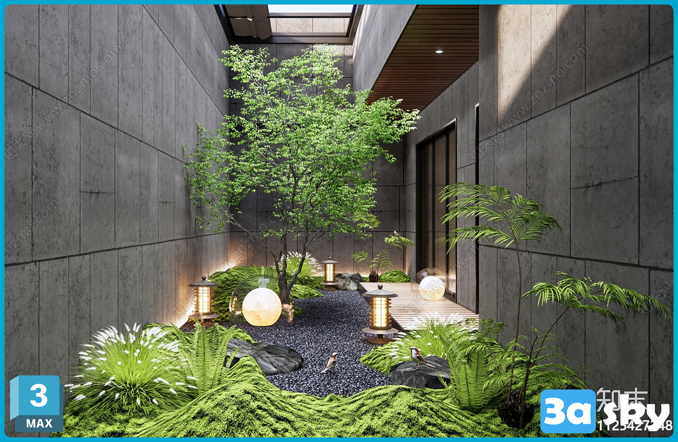 F_现代天井庭院景观_中庭景观_景观灯_蕨类植物_苔藓_石头_微地形_景观树3D模型ID_1125427248.rar