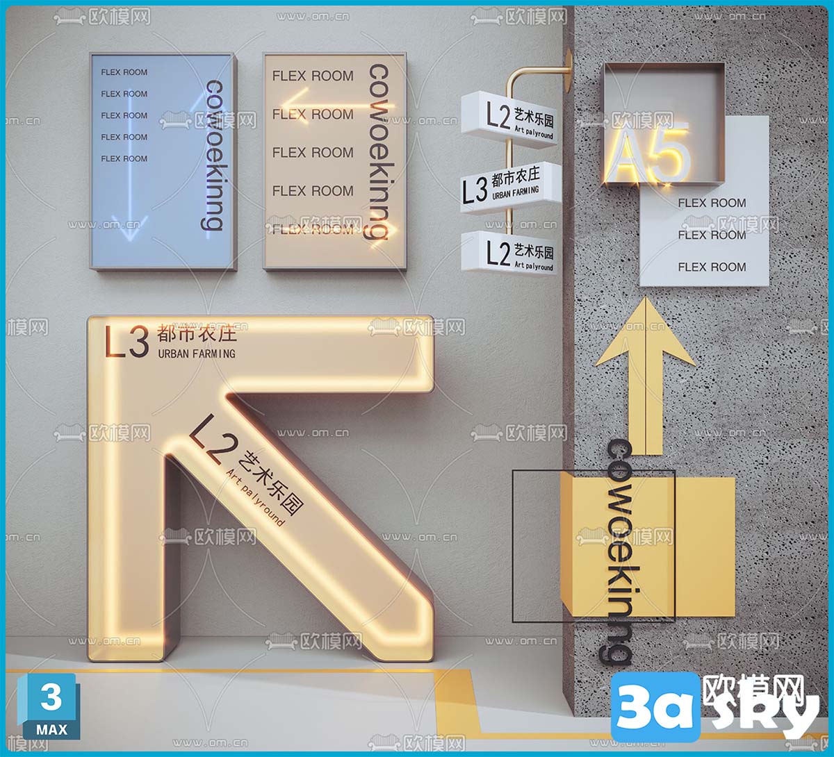 F_网红导视牌 指引牌 灯箱路标 指示牌3d模型 ID-14329606.rar