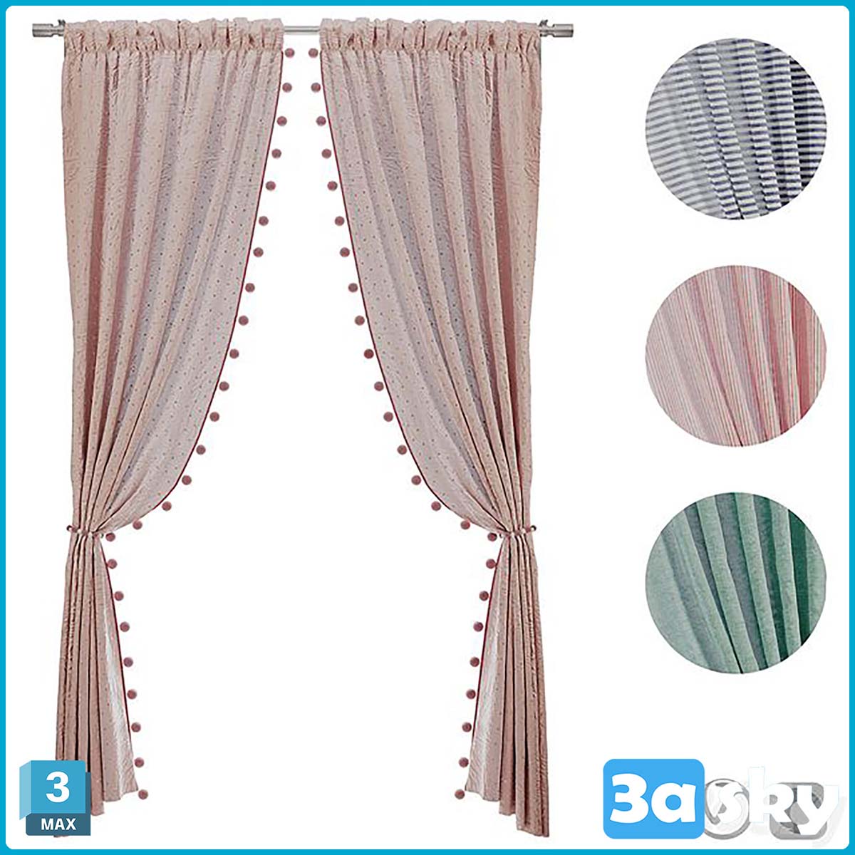 This 3D Max decoration file features a detailed and elegant curtain design, perfect for interior design and home decor projects. The file showcases intricate details and textures, providing a realistic preview of the curtain design. Ideal for architects, interior designers, and 3D modeling enthusiasts looking to enhance their projects with high-quality 3D assets.