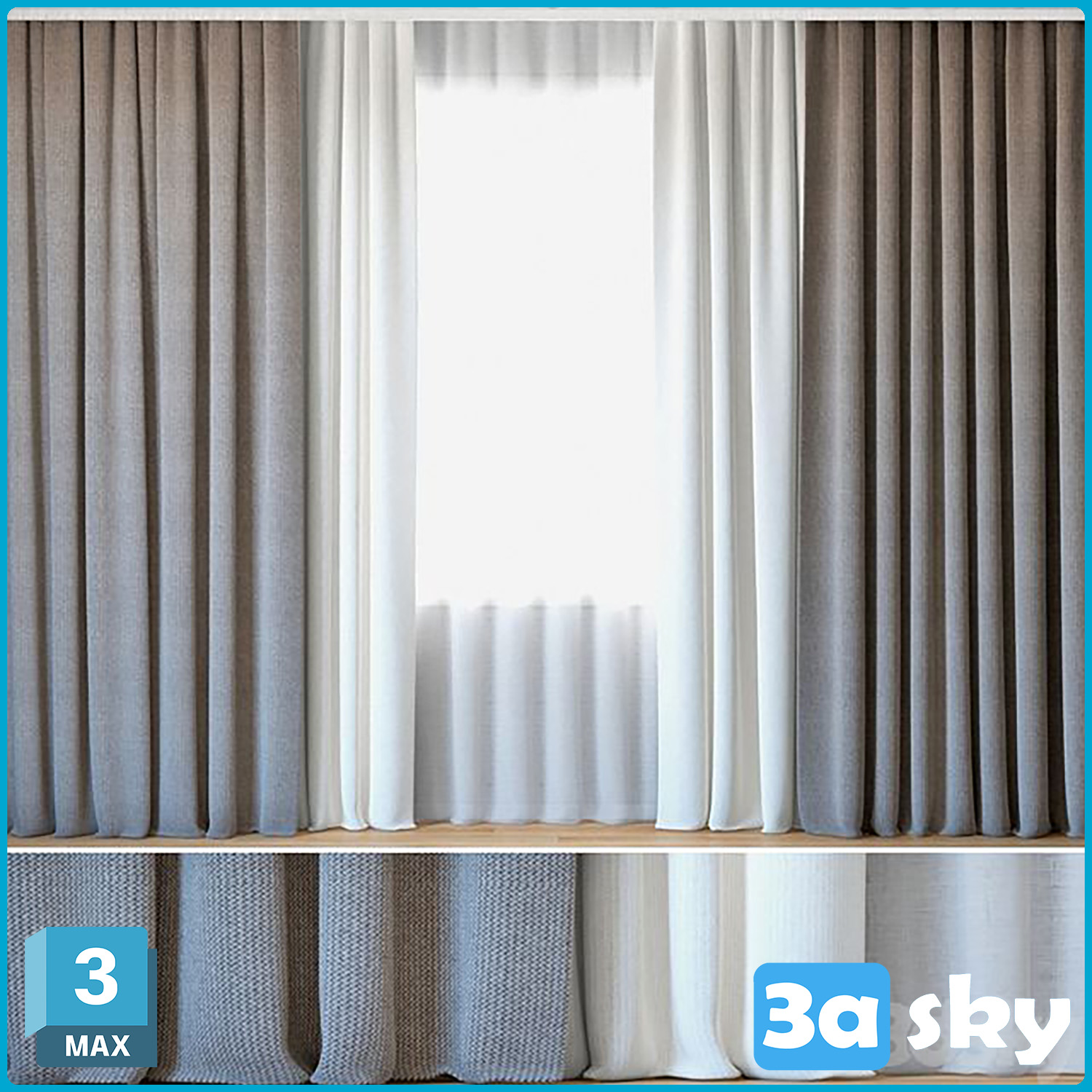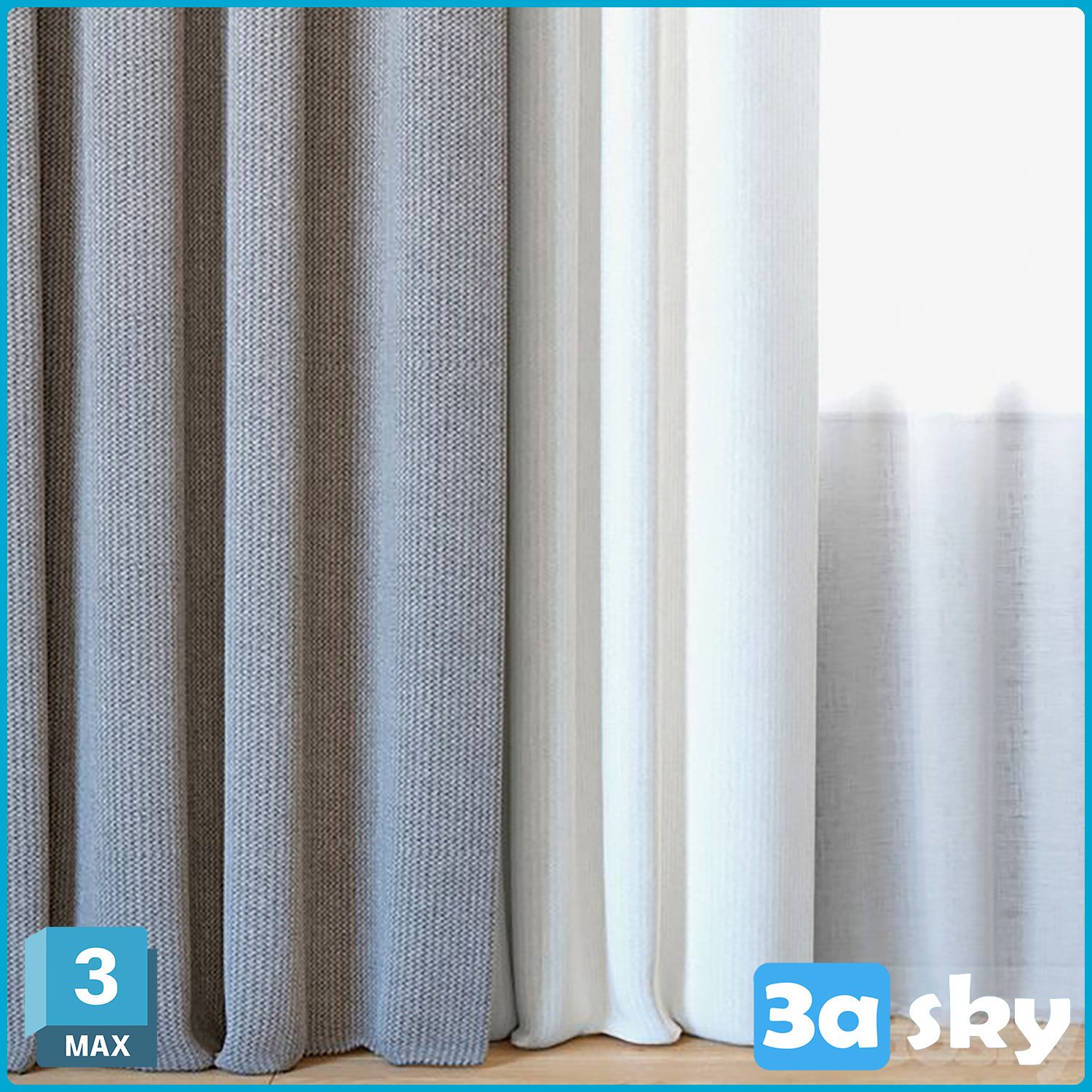 This 3D Max decoration file showcases curtains with tulle, ideal for adding a touch of elegance to interior design projects. The detailed design and realistic textures make it a great addition to any 3D modeling project.