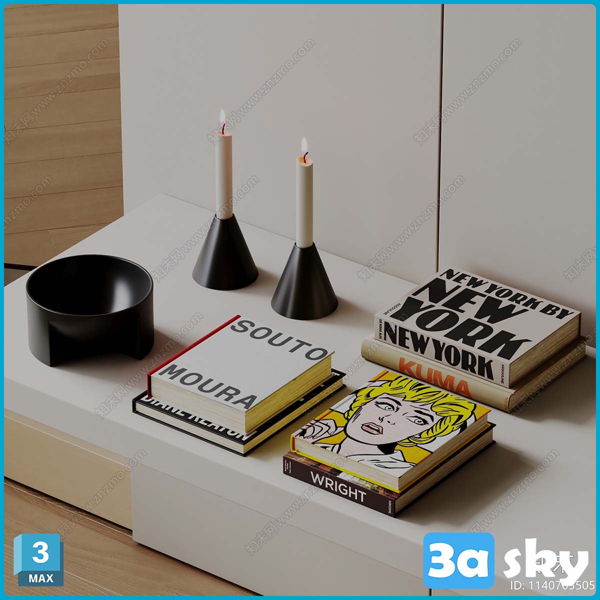 V_vr 1140705505 桌面摆件 装饰品 书本 烛台3d模型 ID-14237275.rar