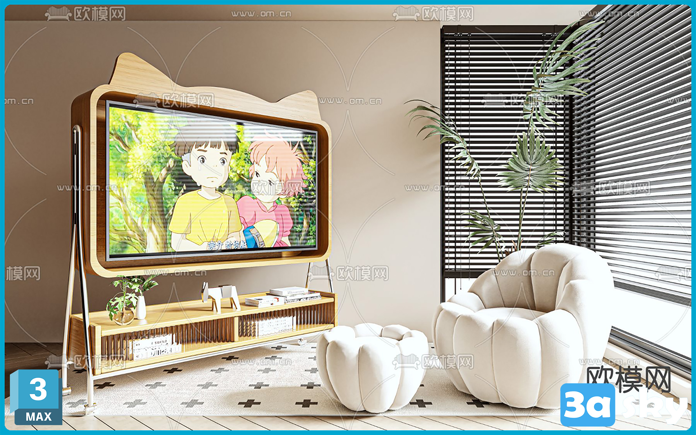 V_VR43电视架电视柜画境电视机3d模型ID-14235148.rar