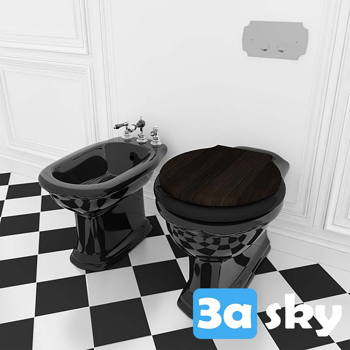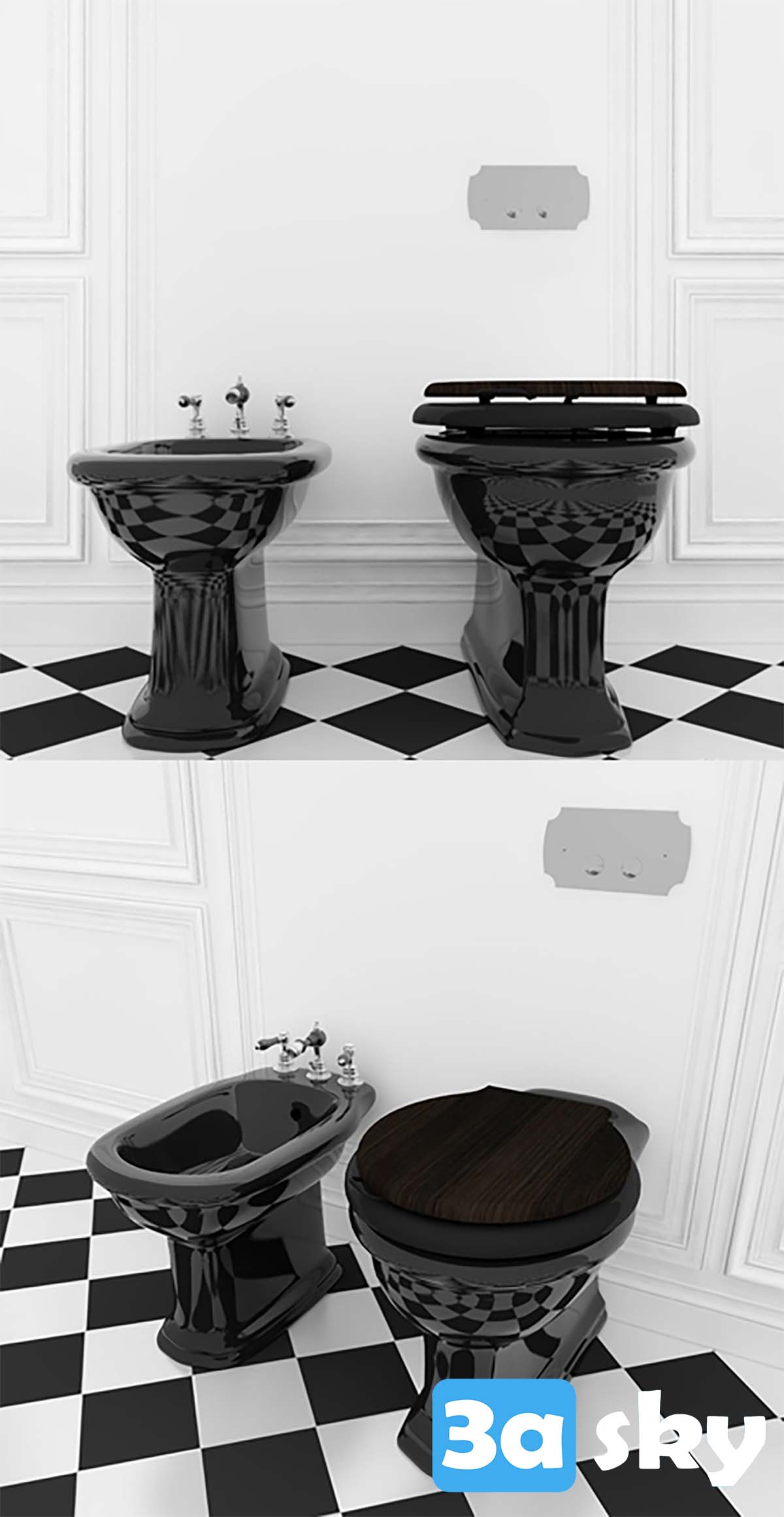 This 3D model file showcases a bathroom and WC design created in 3DS MAX. It includes detailed elements such as a toilet and bidet, suitable for architectural visualization and interior design projects. Enhance your design workflow with this high-quality 3D asset.