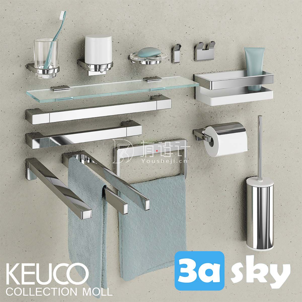 3D Model Bathroom and WC - Keuco Accessoires Collection Moll
