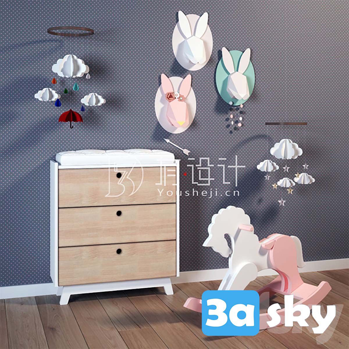This 3D model showcases a kids room decoration from Mama & Papas. The design is created in 3DS MAX format, providing a detailed preview of the decor elements for a children's room.