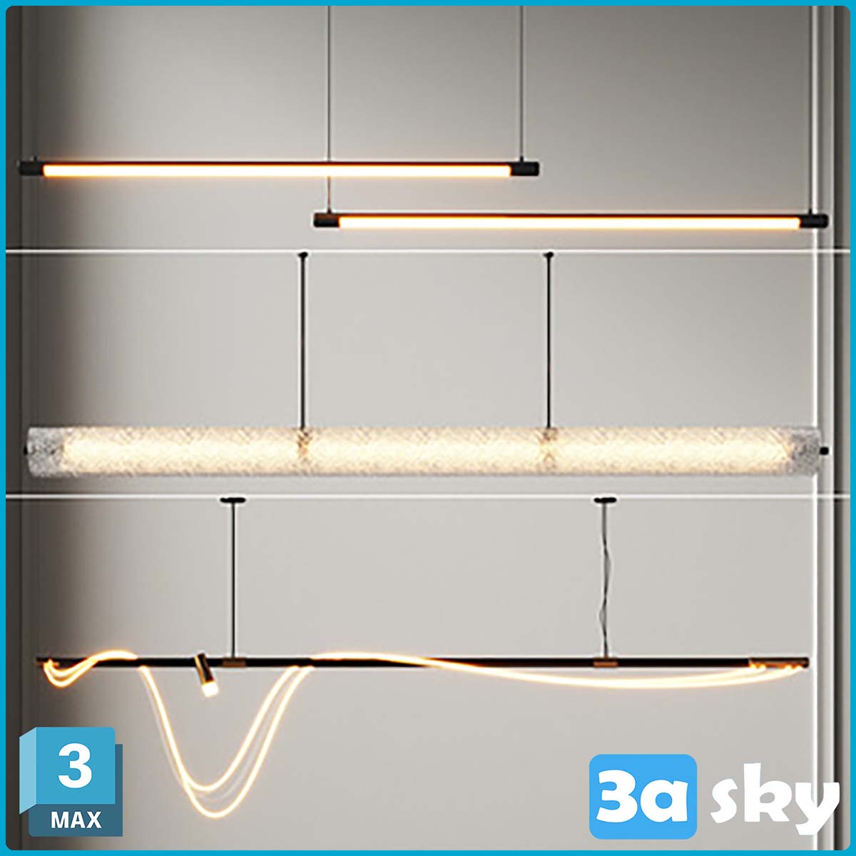 This 3D model showcases a modern lighting design created using 3DS MAX. The interior visualization features realistic lighting effects and intricate details, making it a perfect choice for architectural and interior design projects.