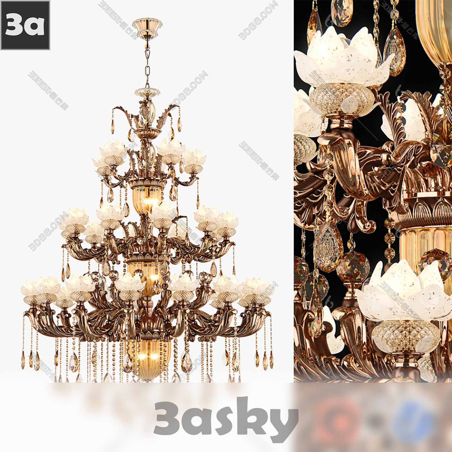 This is a preview image showcasing the lighting design of a 3D model created in 3DS MAX. The image highlights the intricate details and the play of light and shadow in the scene, demonstrating the skillful use of lighting techniques in 3D modeling.