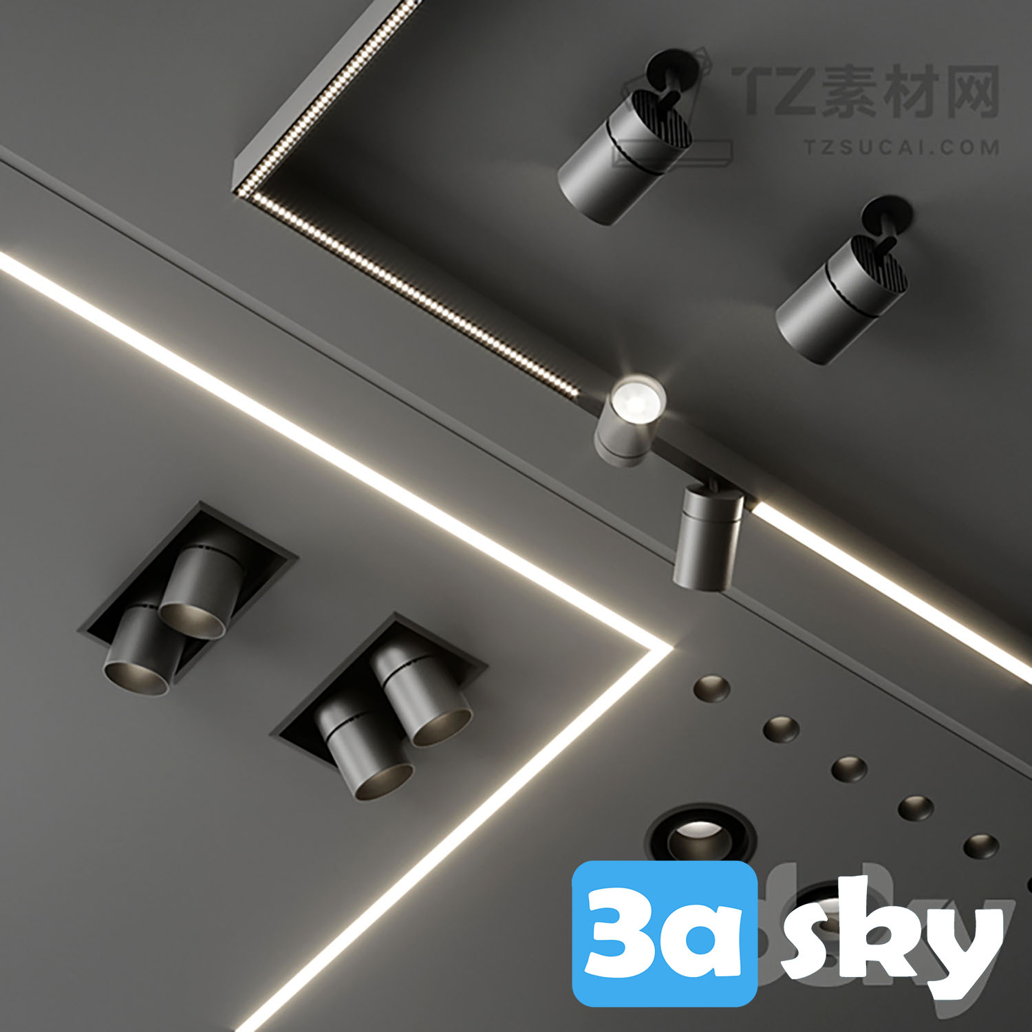 This 3D model showcases intricate lighting design in a modern interior setting. Created using 3DS MAX, the attention to detail and play of light and shadow bring this scene to life. Explore the interplay of light and space in this captivating 3D rendering.