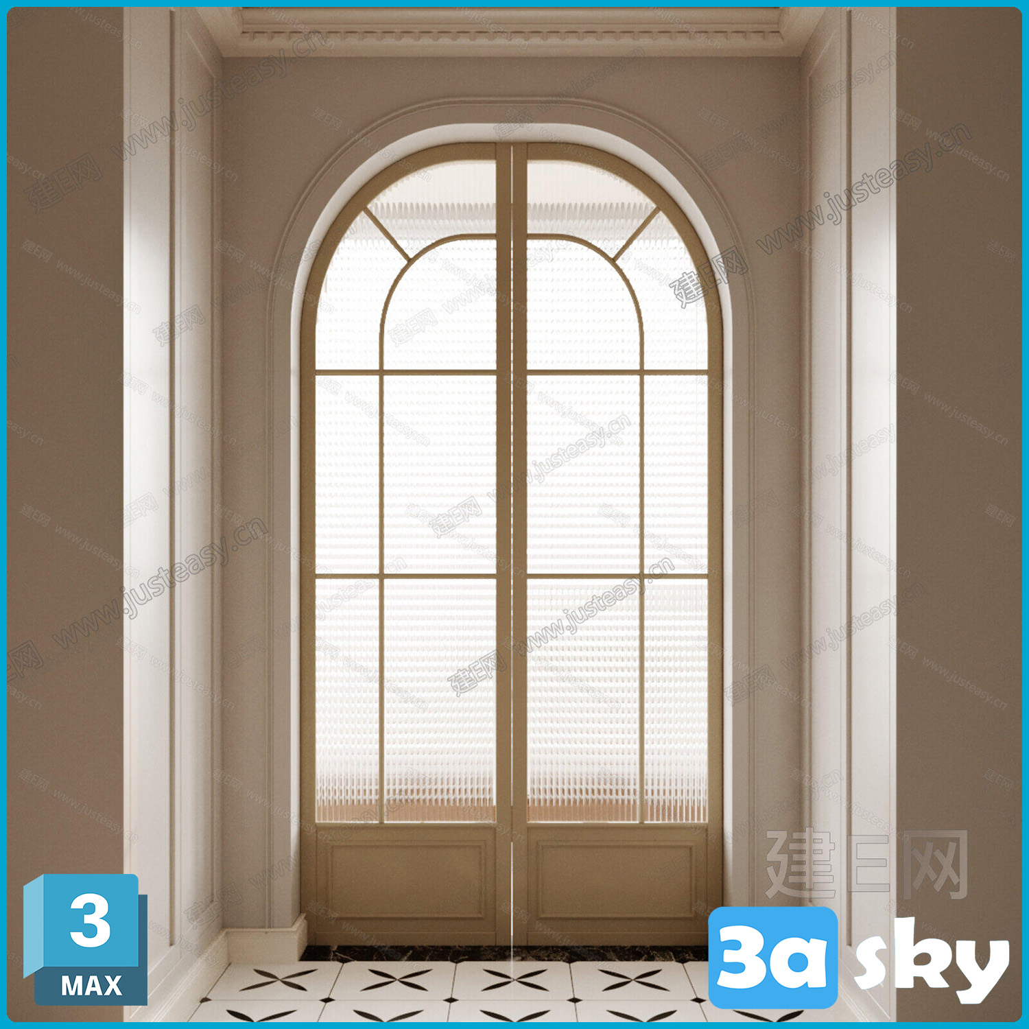 This 3D model showcases a detailed architecture design created using 3DS MAX software. The image features a modern building with intricate details and realistic textures. Perfect for architectural visualization projects and design inspiration.