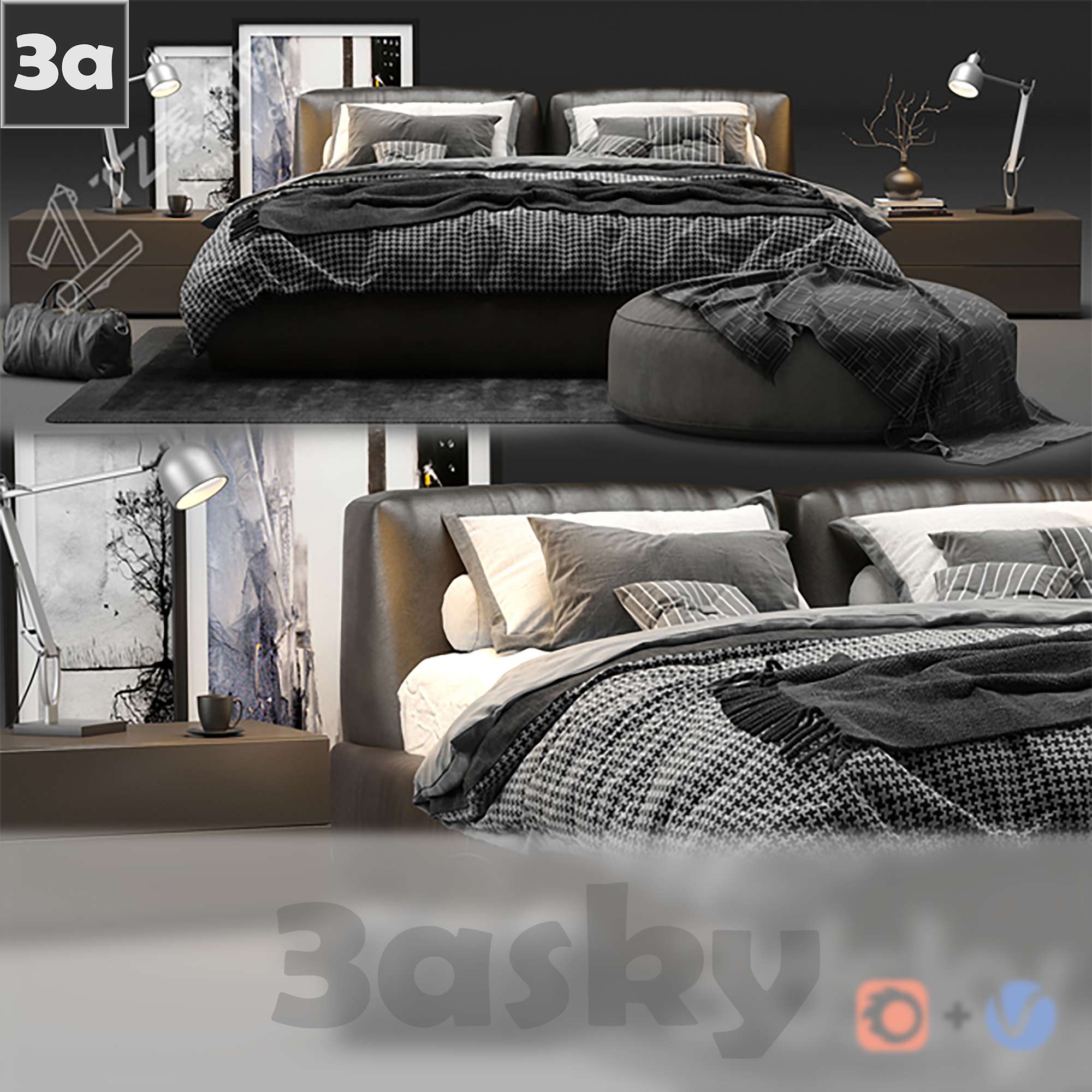 This 3D model showcases a detailed design of Bed 1759455 created using 3DS MAX software. The model features high-quality textures and materials, making it ideal for interior design projects. Explore this furniture piece to enhance your design visualization and rendering capabilities.