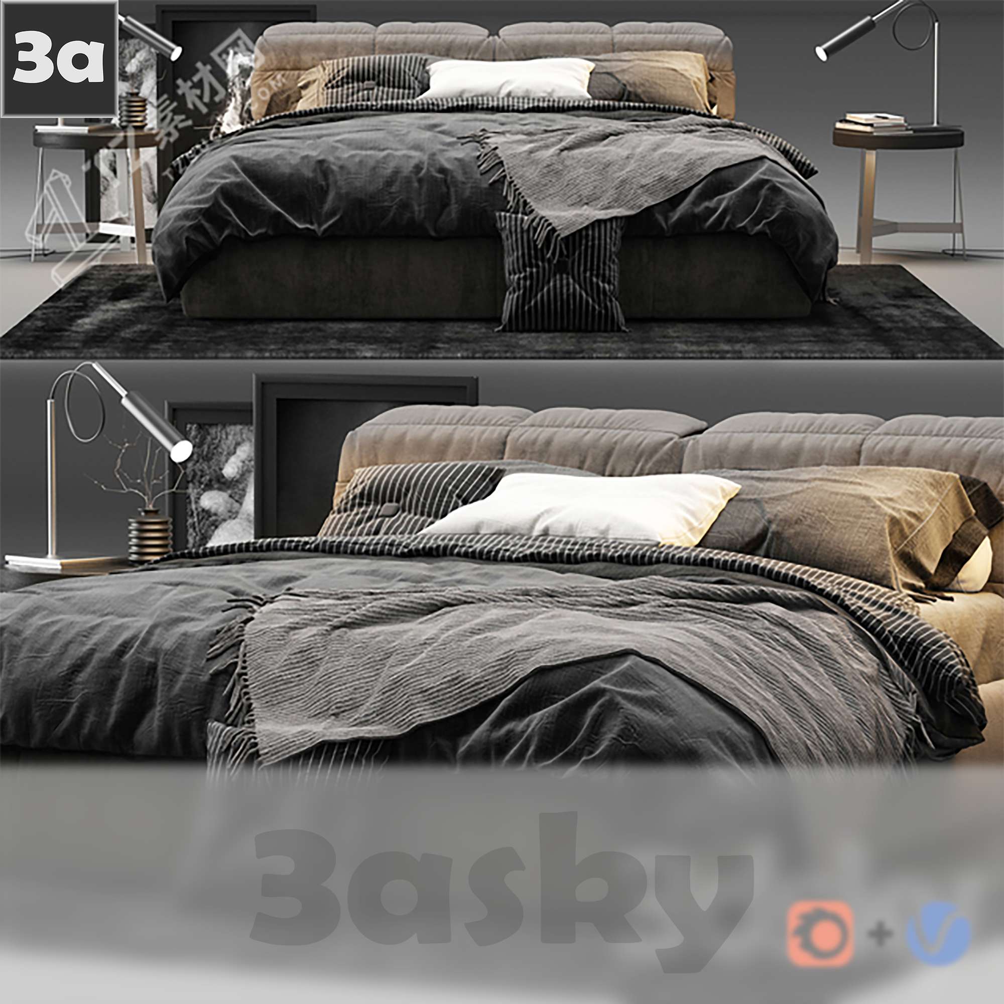 This 3D model showcases a detailed representation of Bed 1839823, designed using 3DS MAX software. The model is ideal for interior designers, architects, and 3D artists looking to enhance their projects with high-quality furniture designs. Explore the intricate details and craftsmanship of this bed model for your interior visualization needs.