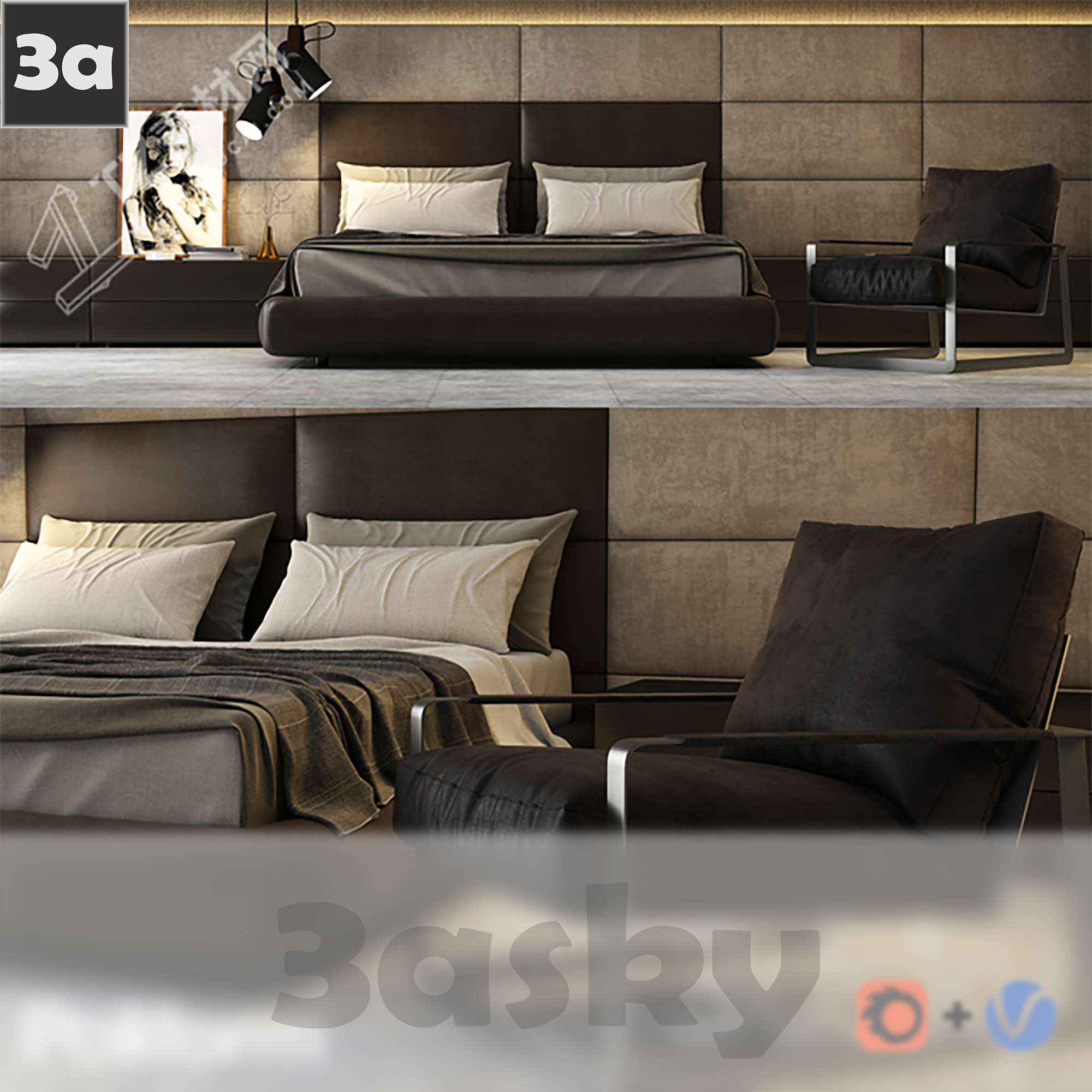 This 3D model showcases a beautifully designed bed created in 3DS MAX. It is a high-quality representation suitable for interior design projects. The intricate details and realistic textures make it a valuable asset for architects and designers looking to enhance their visualizations.