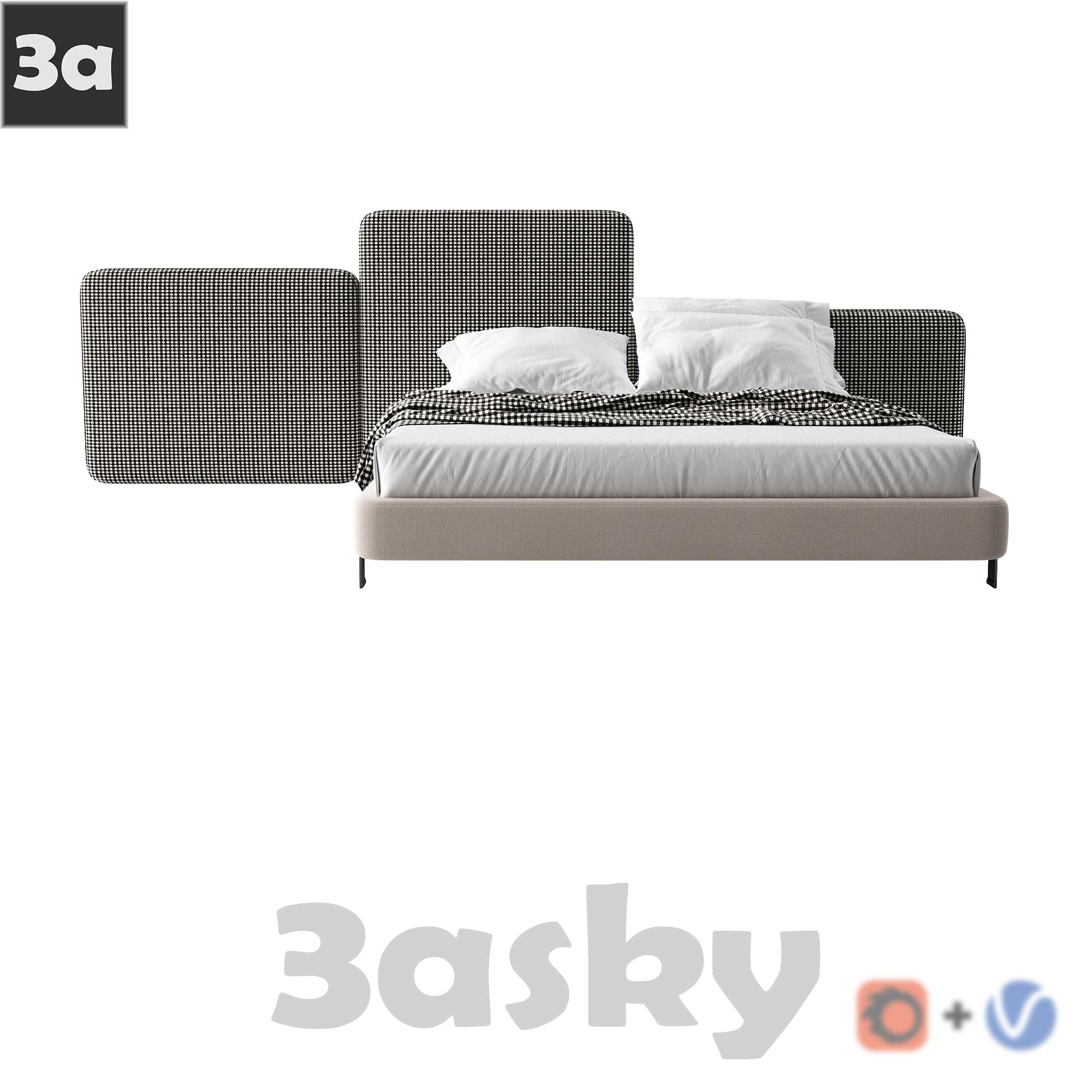 This 3D model showcases a modern bed design with dimensions of cm 102. The intricate details and sleek design make it a perfect addition to any contemporary bedroom. Explore the model to see the fine craftsmanship and styling of this furniture piece.