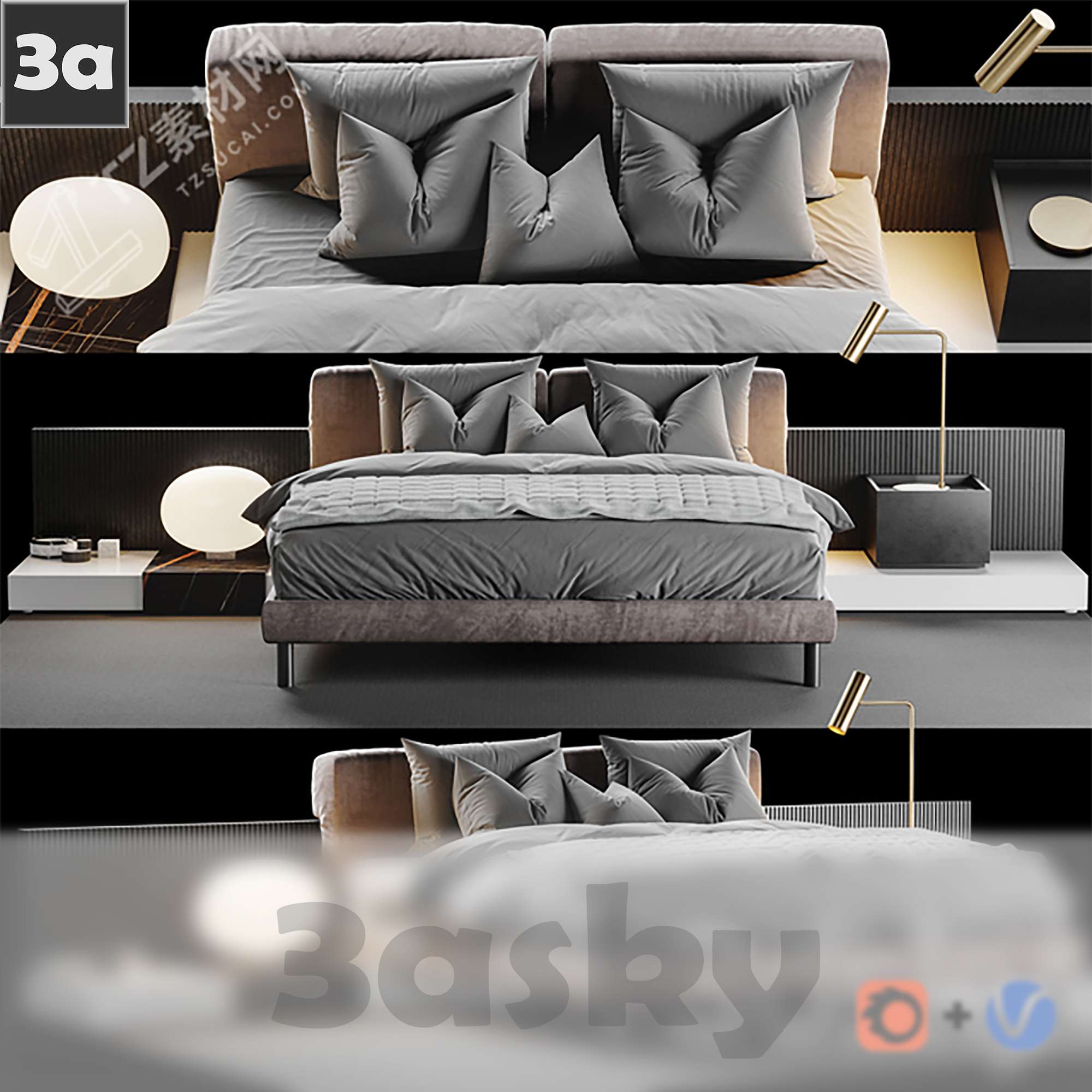 This 3D model showcases a detailed and realistic representation of a bed furniture piece. Created using 3DS MAX software, this model is ideal for interior designers, architects, and 3D artists looking to enhance their projects. The high-quality render captures the intricate details and textures of the furniture, making it a valuable asset for various design purposes.