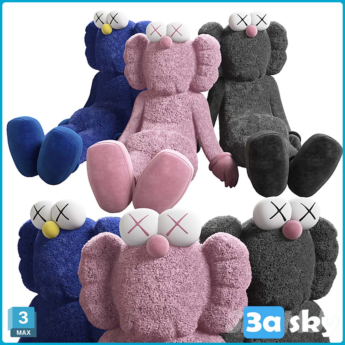 This 3D model showcases a KAWS figure designed in 3DS MAX, perfect for kids. The model features vibrant colors and a playful design, making it an ideal addition to any collection or project. Explore the intricate details of this toy and bring a touch of fun to your creations.