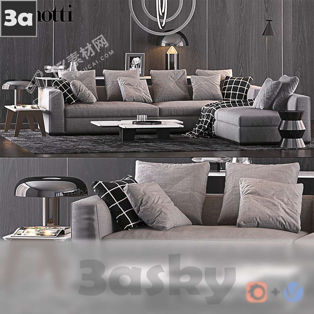 This 3D model showcases the SF Sofa 1460964, a contemporary furniture piece designed using 3DS MAX software. The model features intricate details and a modern aesthetic, making it a versatile addition to interior design projects. Explore the design elements and craftsmanship of this furniture piece through the high-quality 3D rendering.