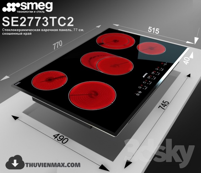 This 3D model showcases the Smeg SE 2773 TC2 kitchen appliance in high detail. The rendering highlights the sleek design and modern features of the Smeg SE 2773 TC2, making it a perfect addition to any kitchen setting.