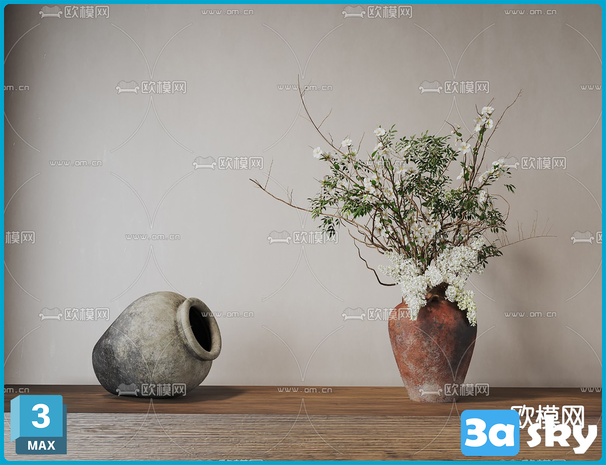 V_花瓶花艺陶罐干枝插花3d模型ID-14300312.rar