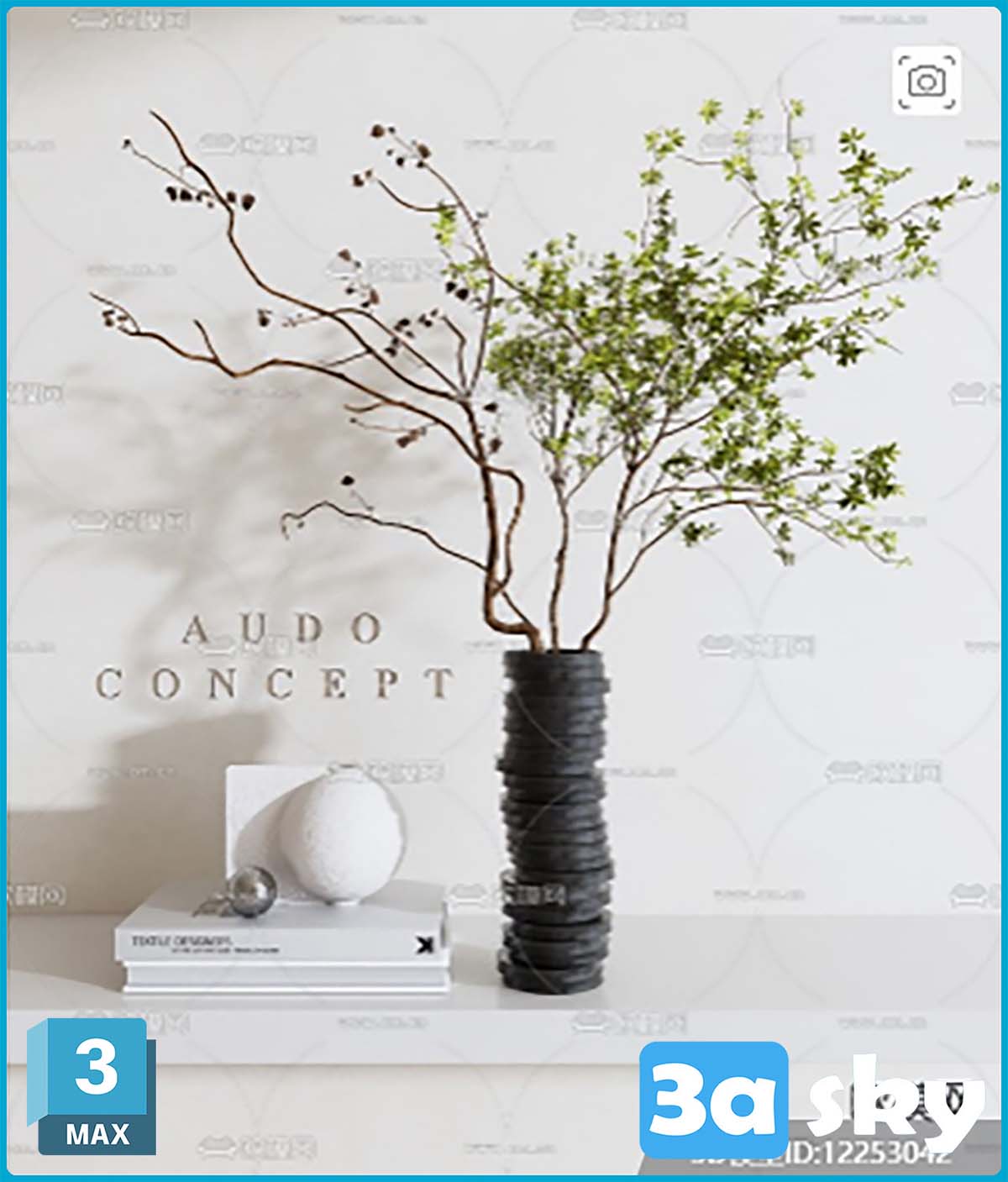 V_水养绿植 花瓶书籍 摆件3d模型ID_2426820.rar