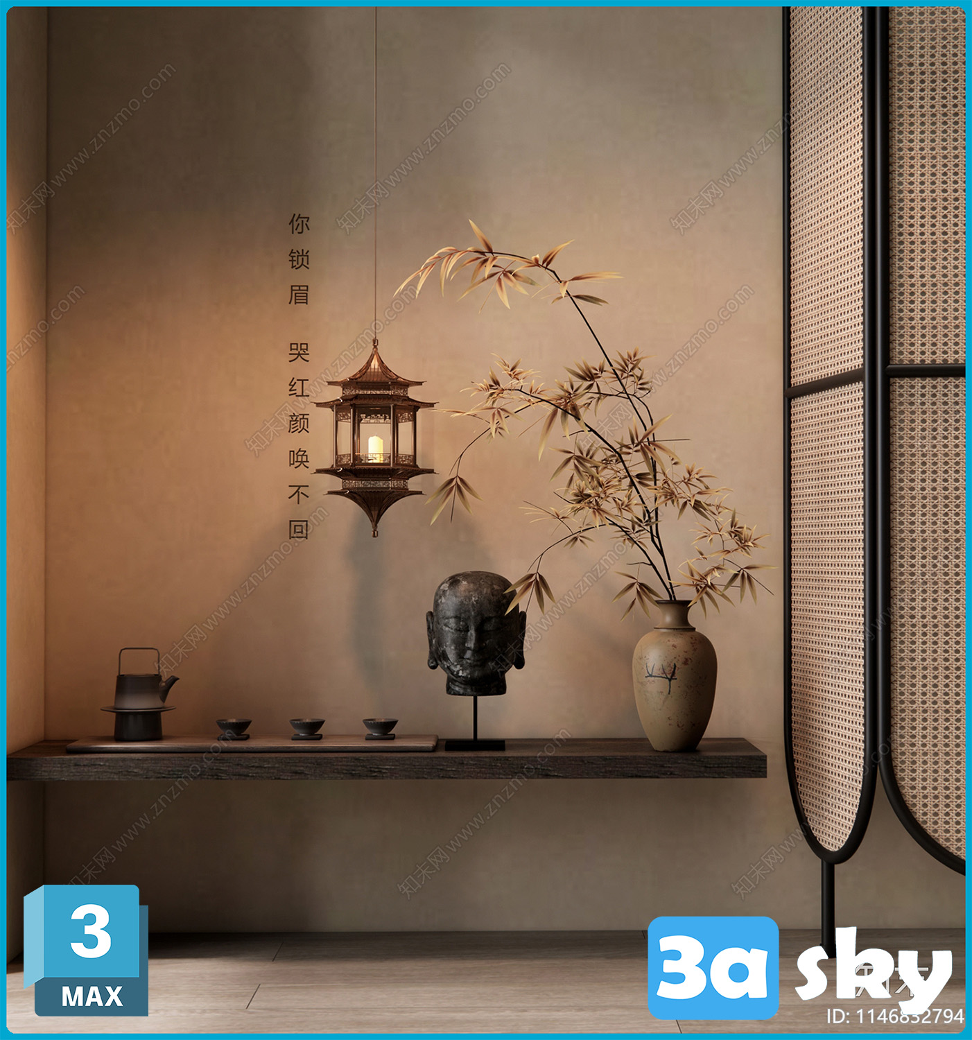 V_VR新中式竹子花瓶花艺_端景条案_古建筑吊灯_佛像摆件_屏风_玄关摆件3D模型ID_1146832794.zip