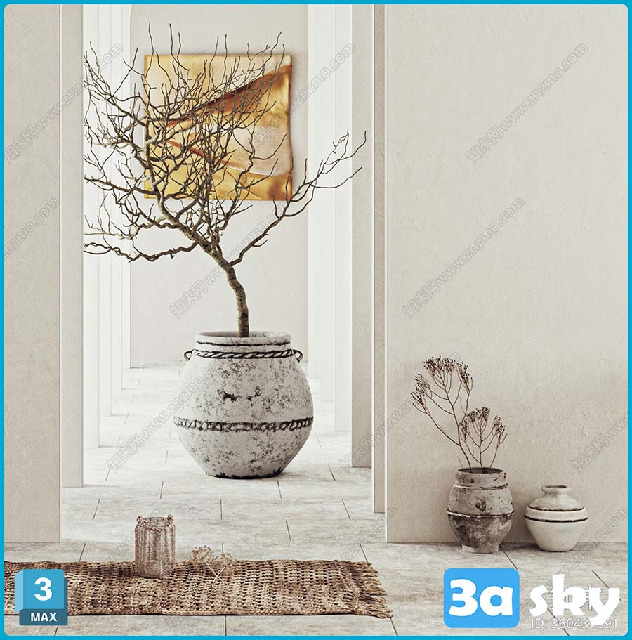 V_现代风格盆栽_陶罐_墙饰_地毯3D模型ID_360437891.rar