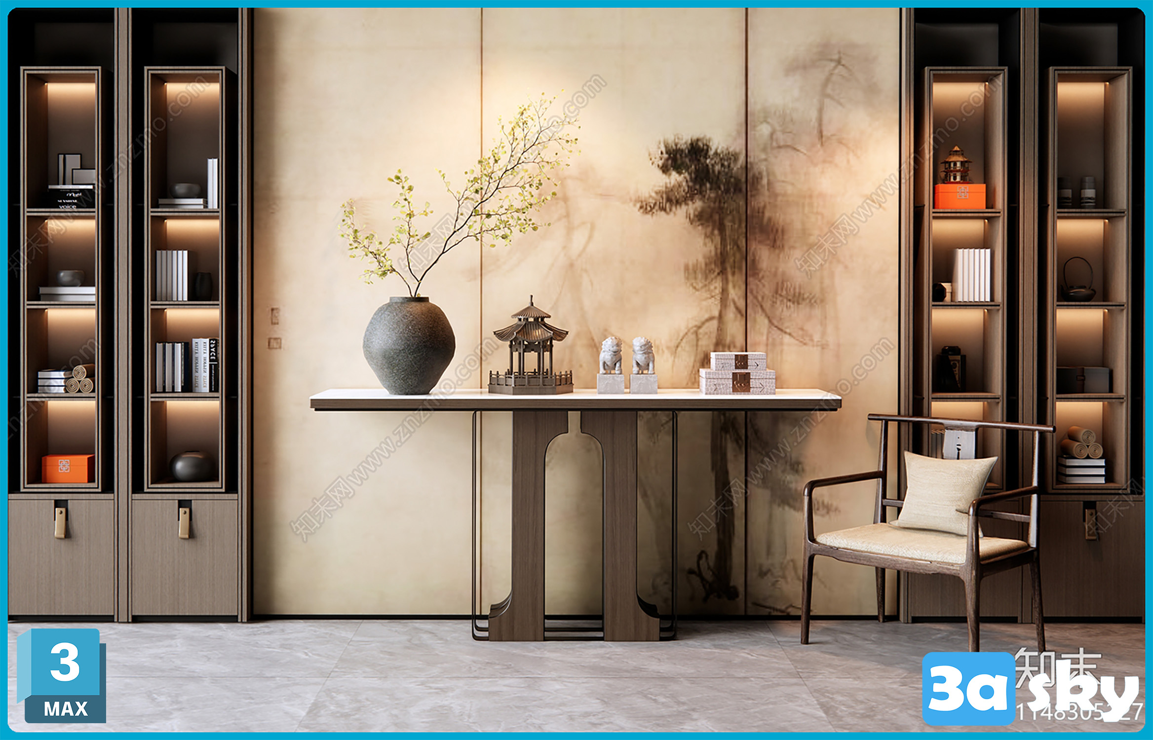 V_VR新中式端景台_装饰玄关_花瓶饰品摆件_休闲椅_背景墙_装饰柜3D模型ID_1148305227.zip