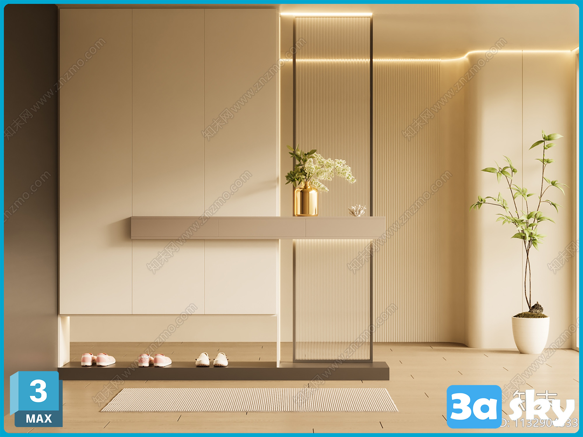 V_VR现代奶油风玄关_鞋柜_隔断3D模型ID_1132904333.rar
