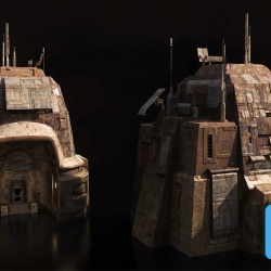 This is a preview image of the 3D model Outpost from Kitbash3D. The model features a futuristic and sci-fi inspired architecture, suitable for creating immersive and detailed environments in 3DS MAX or other 3D modeling software. The Outpost design includes intricate details and elements that can be used in various projects such as game development, animation, or architectural visualization.