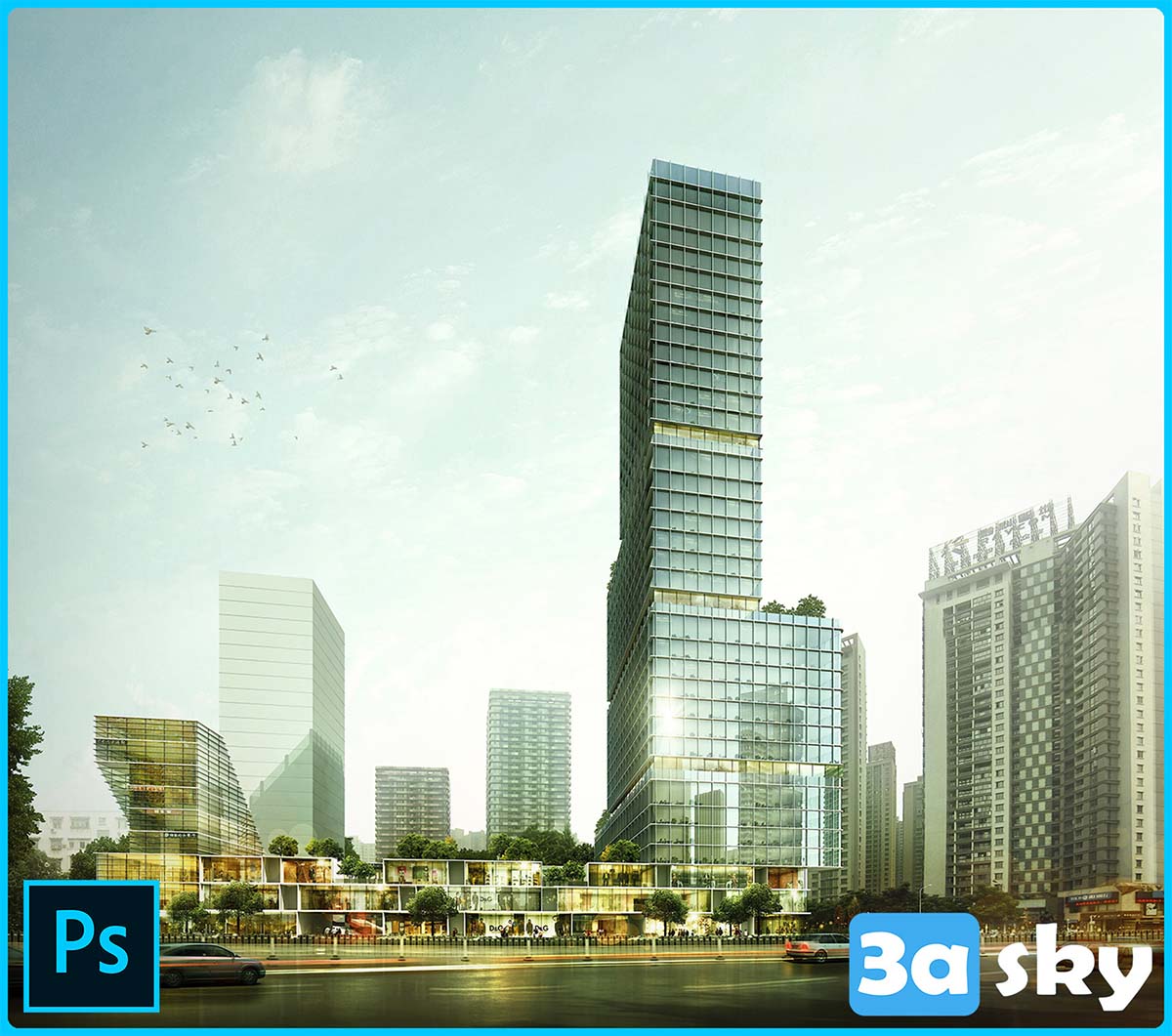 This Photoshop finished file showcases a high-quality 3D model rendering of a modern living room interior design. The detailed visualization includes furniture, decor, and lighting elements, providing inspiration for interior design enthusiasts and professionals alike.
