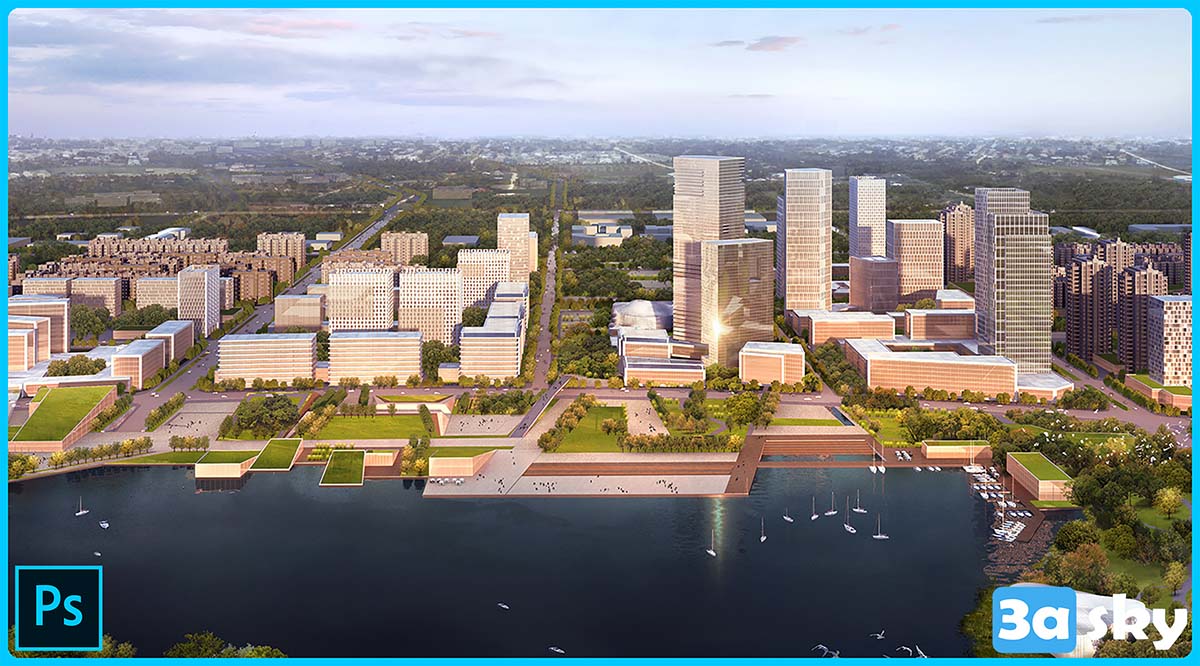 This Photoshop finished file showcases a high-quality 3D model rendering of a modern living room interior design. The image features sleek and stylish furniture pieces, creating a contemporary and inviting space. Explore the details and design elements in this visually appealing representation of modern interior design.
