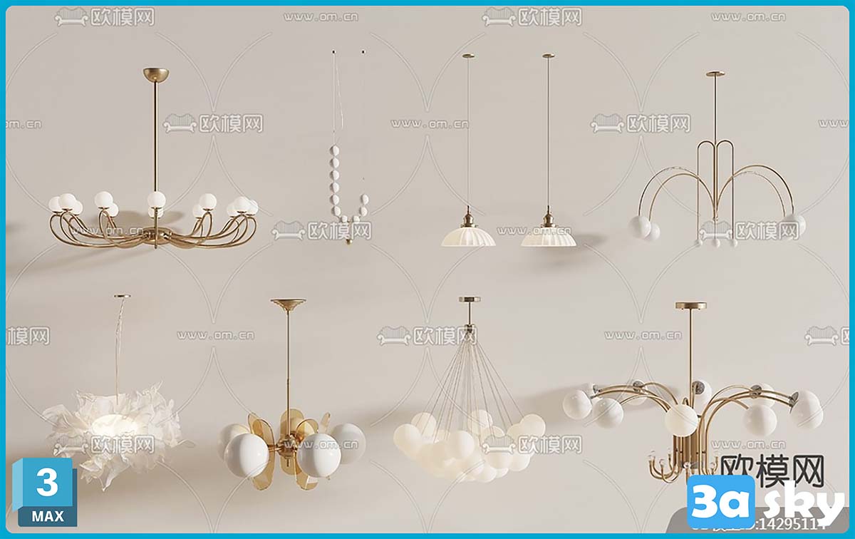 V_法式吊灯时尚吊灯3d模型ID-14295114.rar
