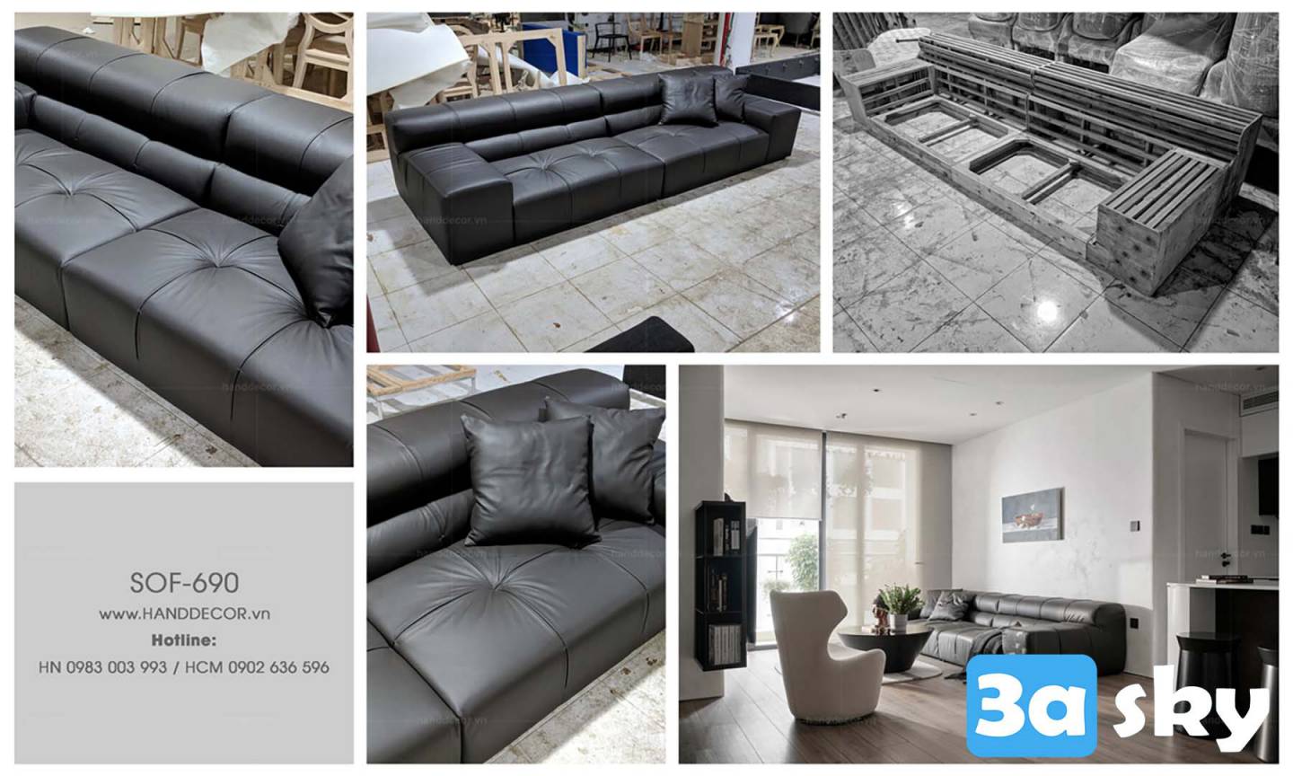 This 3D model preview showcases the SOF-690 design in high quality. It is a detailed representation of the furniture piece, perfect for architectural visualization and interior design projects. Download this 3D model to enhance your creative projects.