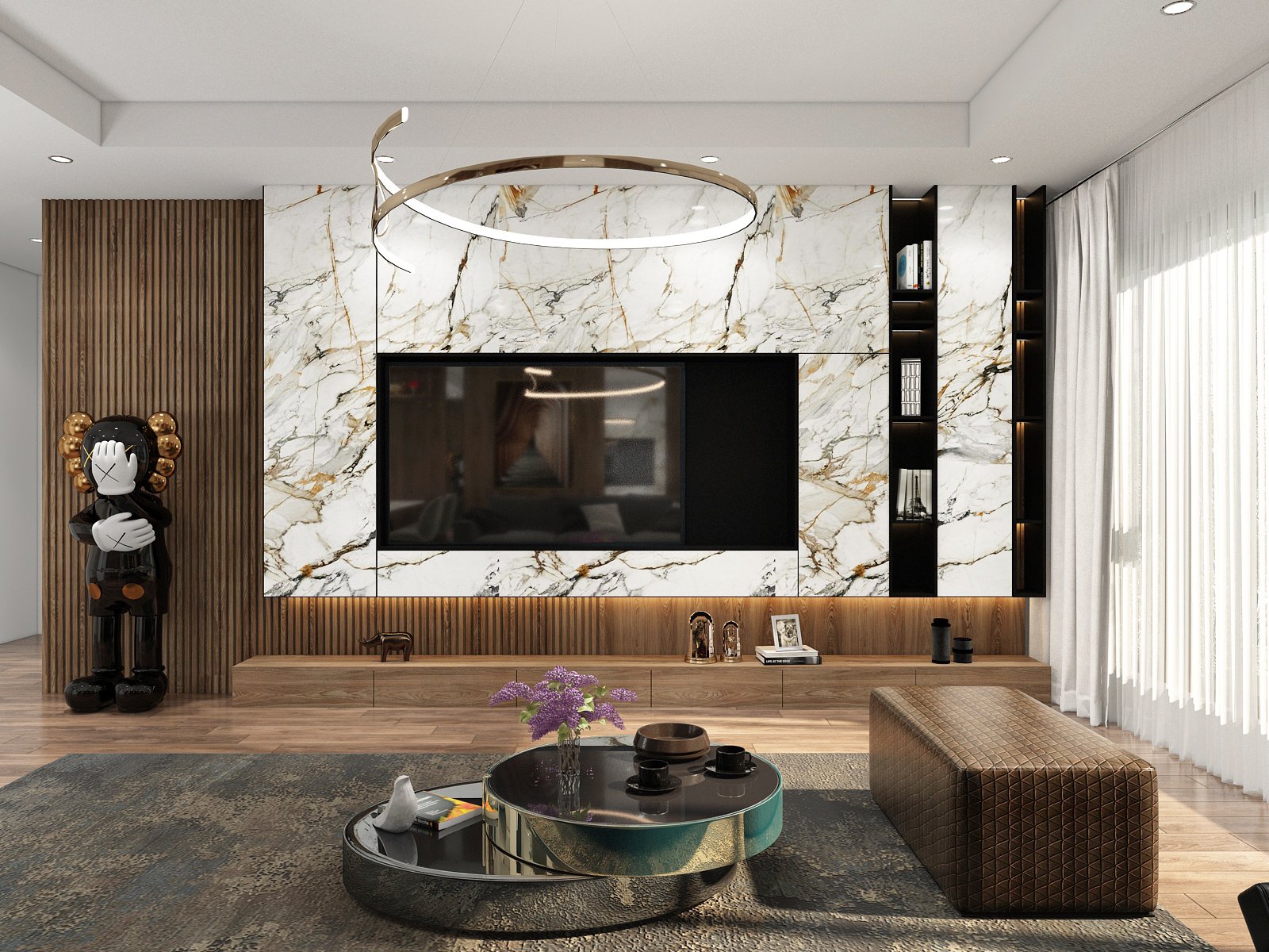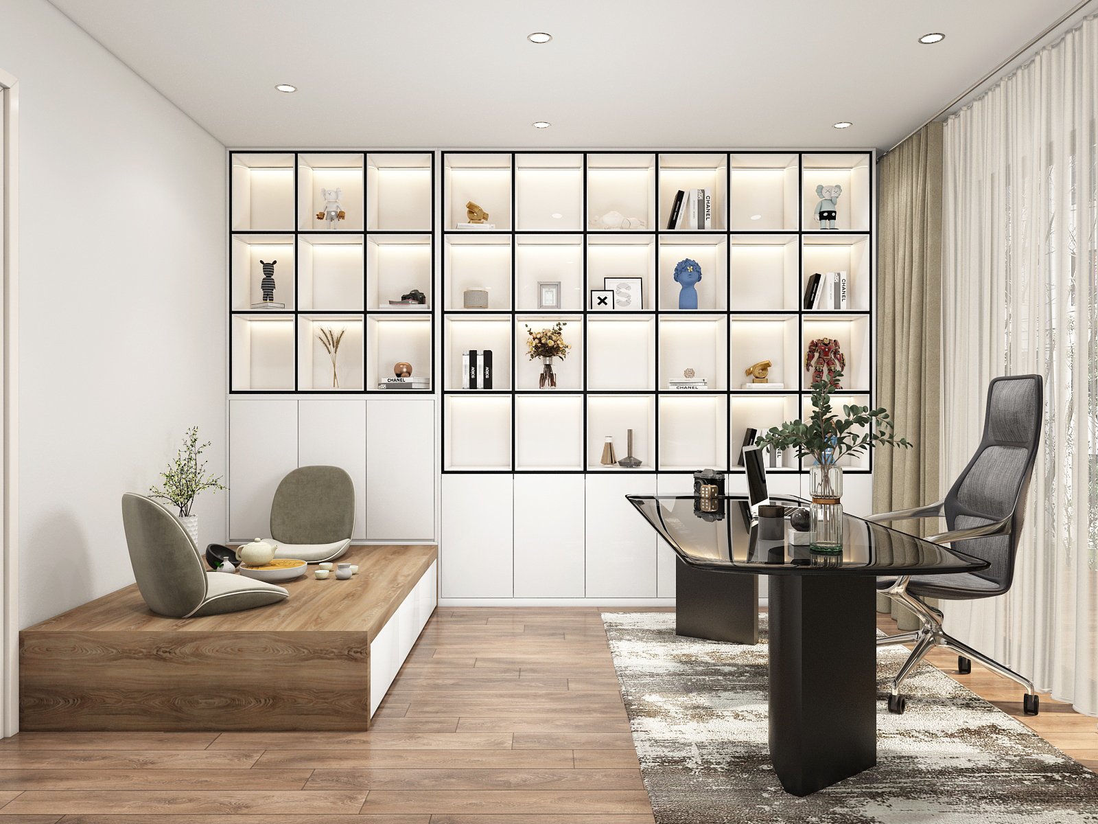 This 3D scene, created by Le Hong Hieu, showcases a beautifully detailed interior design with realistic lighting and textures. The attention to detail in this 3D model is evident, making it a perfect example of high-quality 3D visualization work.