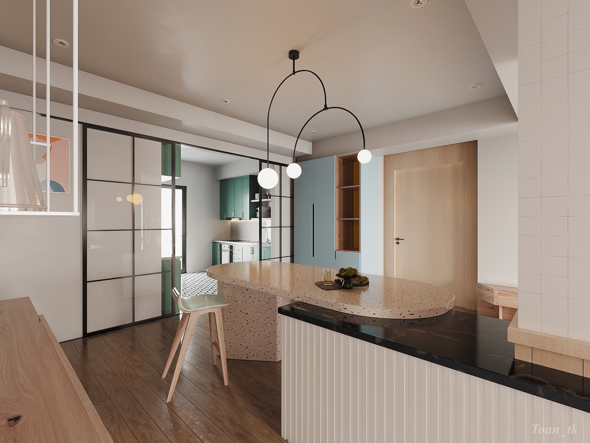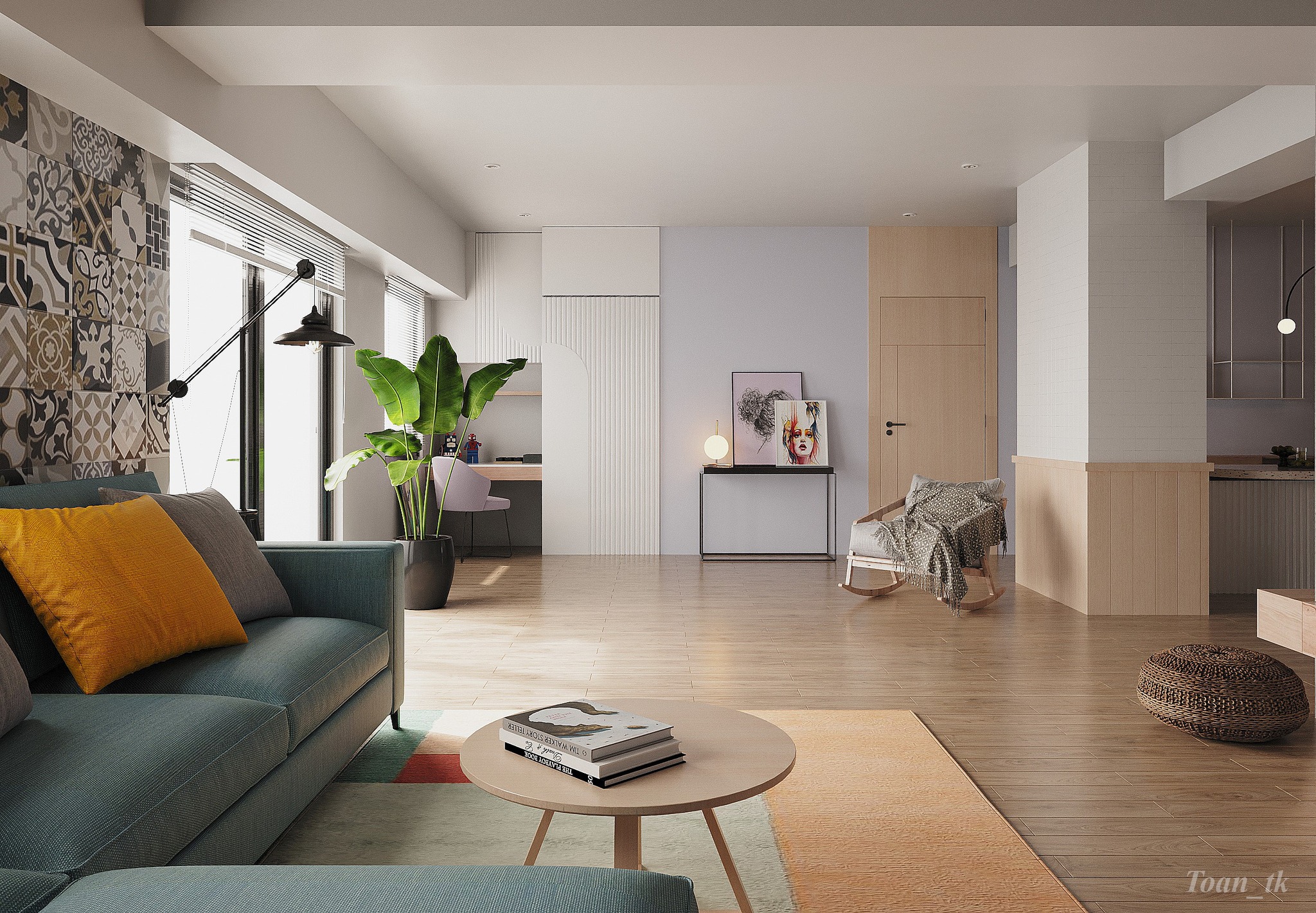 This 3D scene, created by Ngo Minh Toan, showcases a stunning architectural and interior design concept. The scene features intricate details and realistic textures, providing a visually appealing and immersive experience. Explore the creativity and skill of Ngo Minh Toan through this captivating 3D visualization.