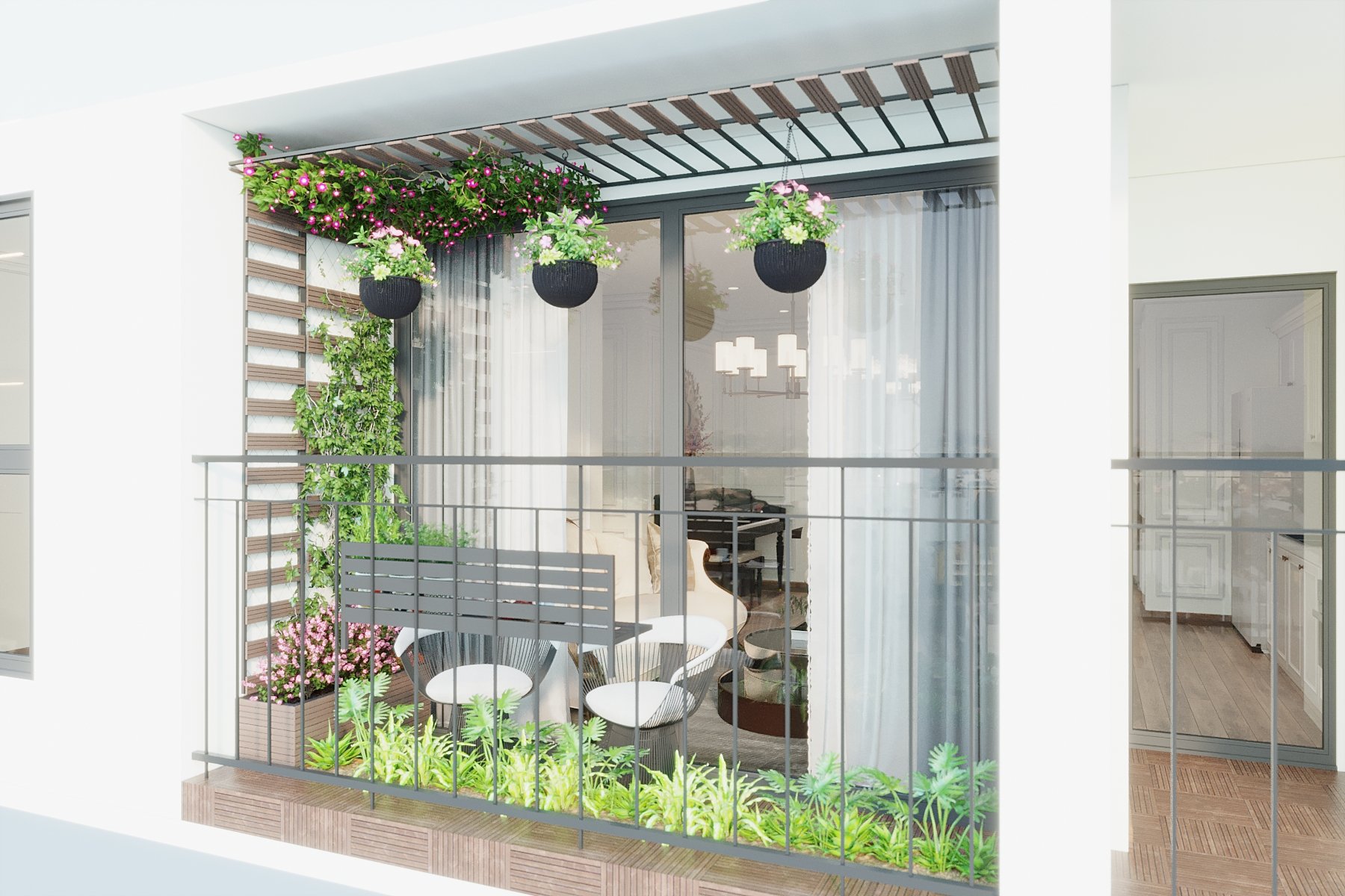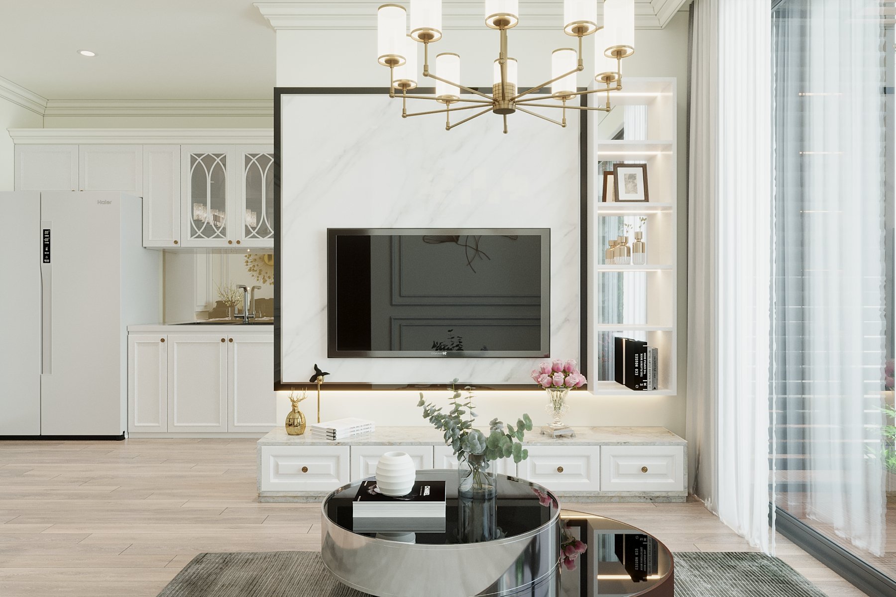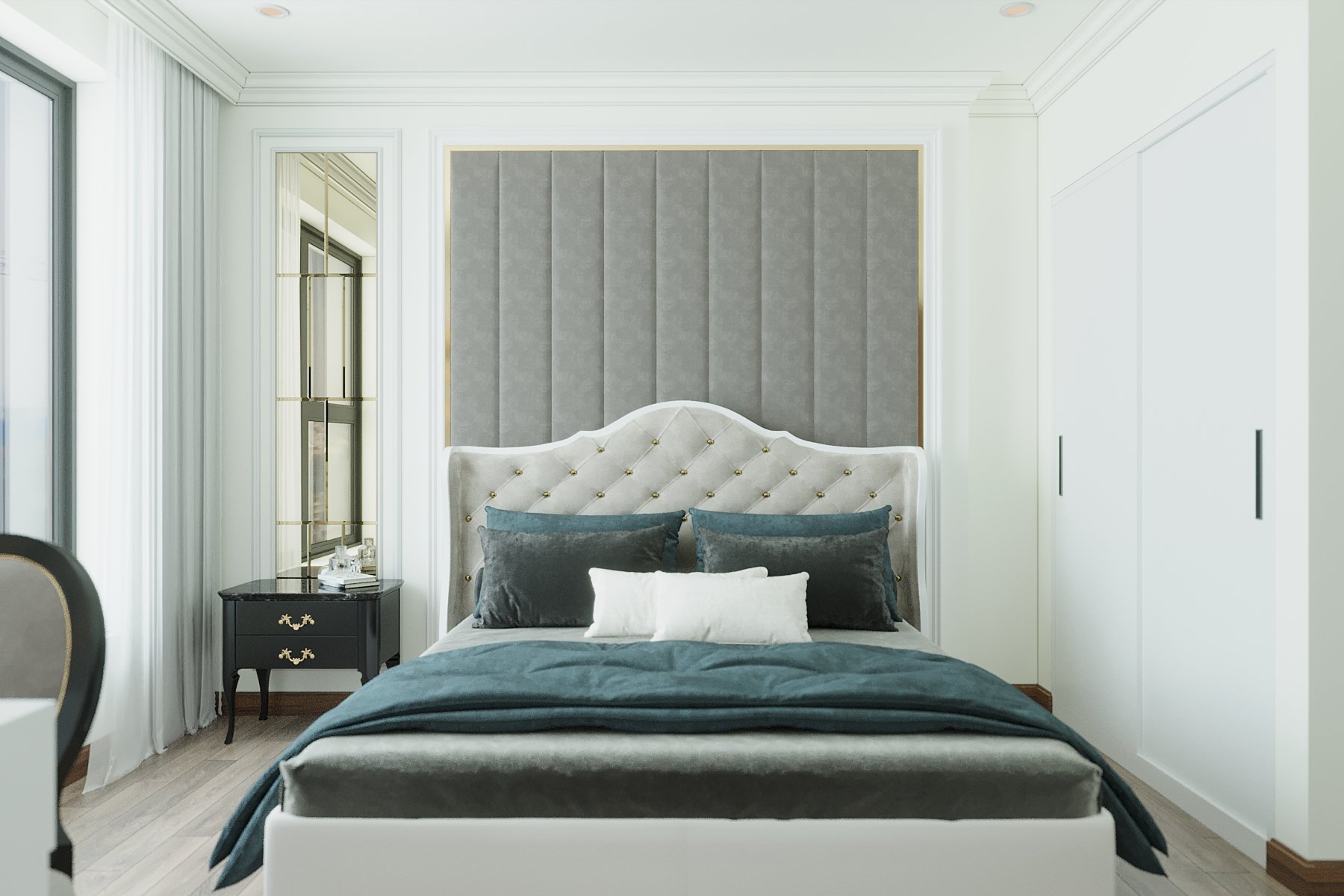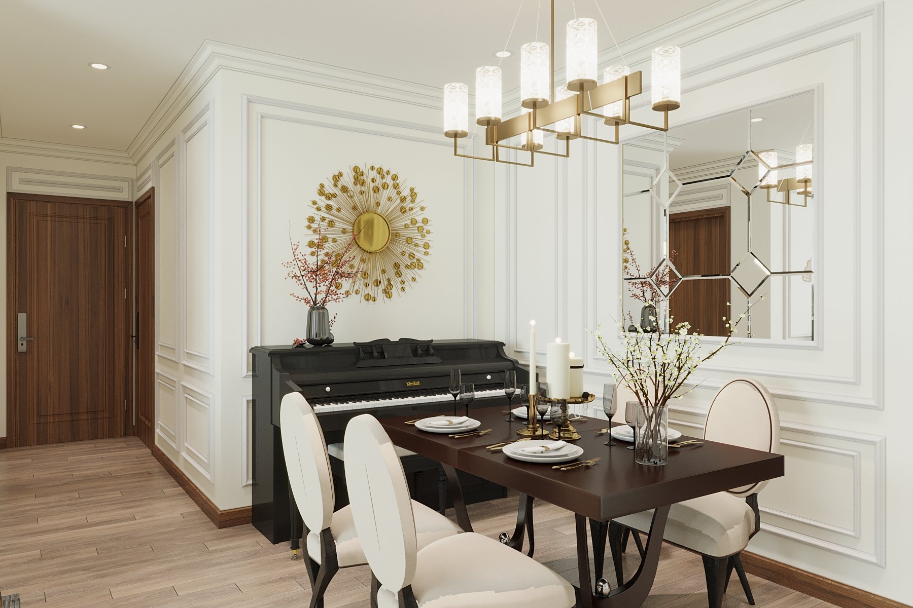 This 3D scene, created by Nguyen Ba Manh, showcases a beautifully detailed interior design with realistic textures and lighting. The scene is a testament to the skill and creativity of the designer, capturing the essence of modern architecture and interior aesthetics.