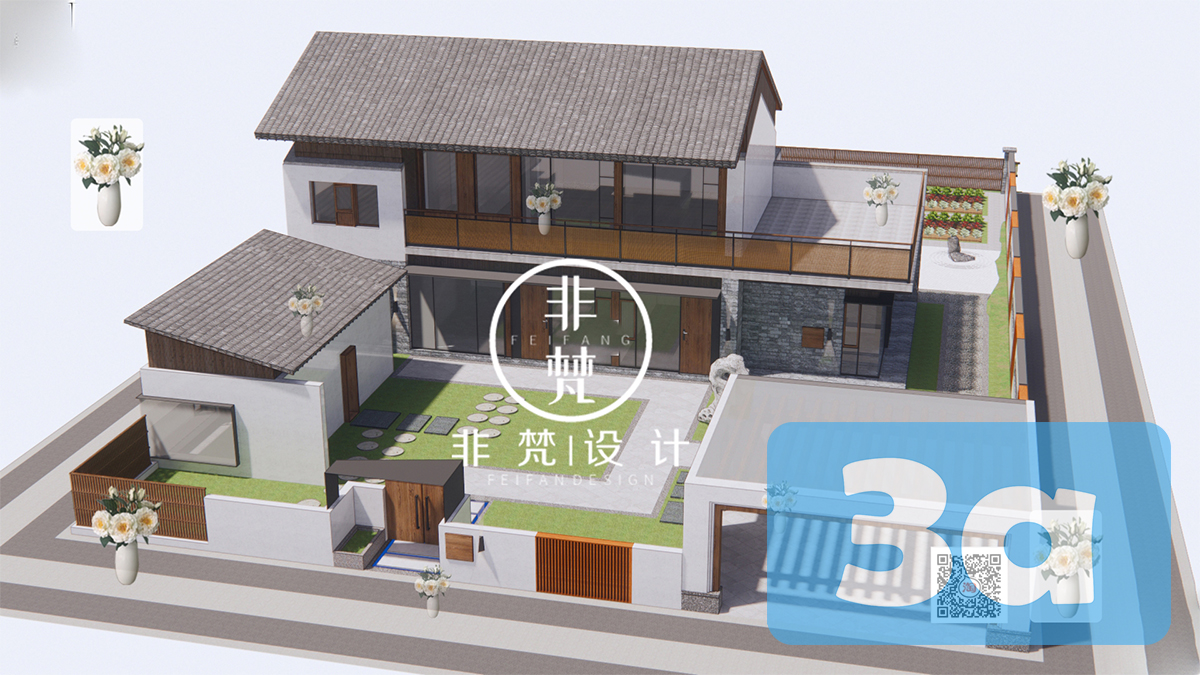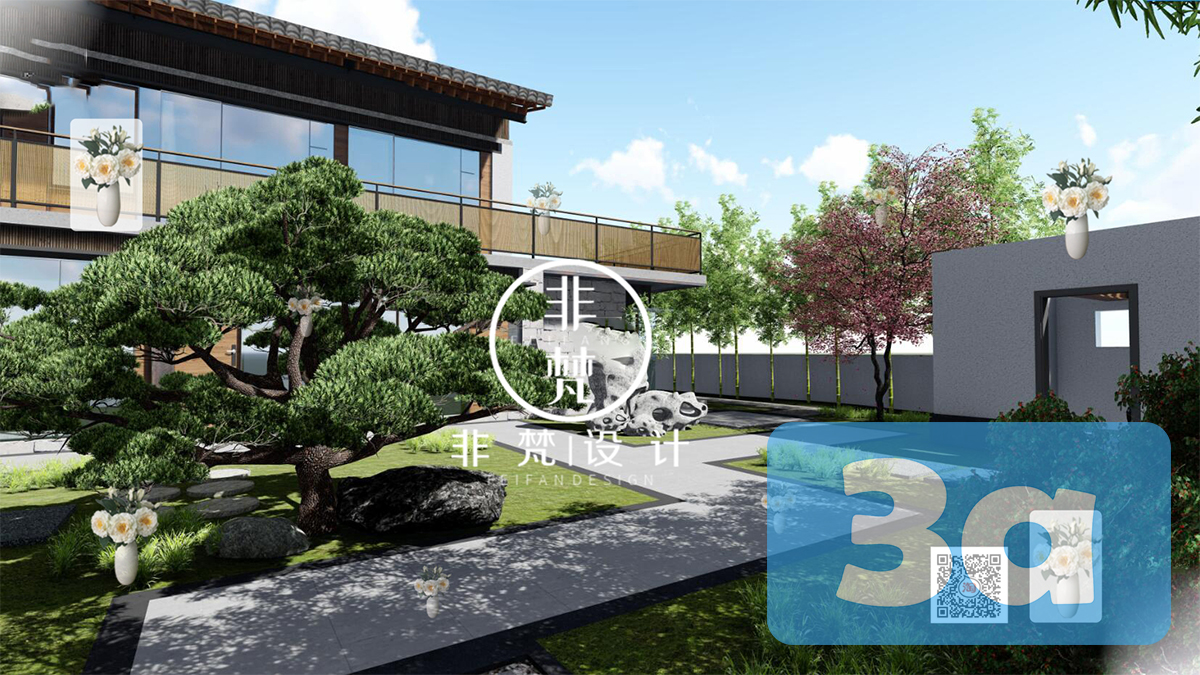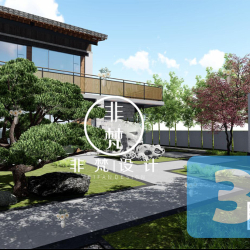 This 3D scene features an exterior design with a focus on modern architecture. The visualization showcases a contemporary building with intricate details and a stylish outdoor setting. Explore the blend of functionality and aesthetics in this captivating design.