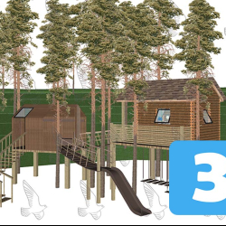 This 3D scene preview showcases the interior design of a homestay, featuring modern furniture and architectural elements. The scene provides a glimpse into a cozy and stylish living space, perfect for relaxation and comfort.