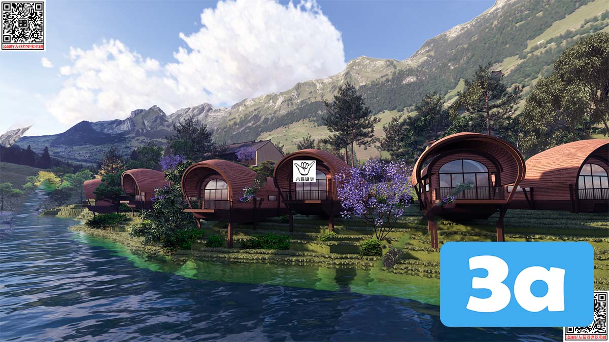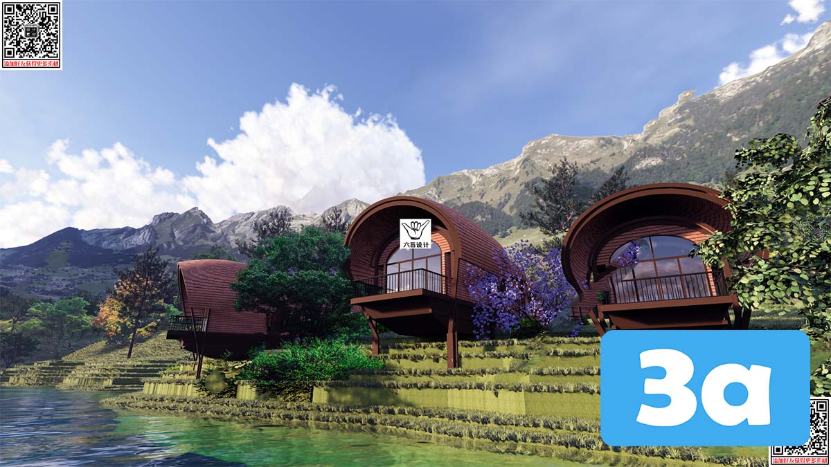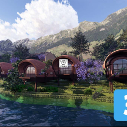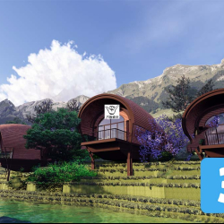 This 3D scene preview showcases the interior design of a homestay, featuring modern furniture and architectural elements. The scene provides a glimpse into a cozy and stylish living space, perfect for relaxation and comfort.