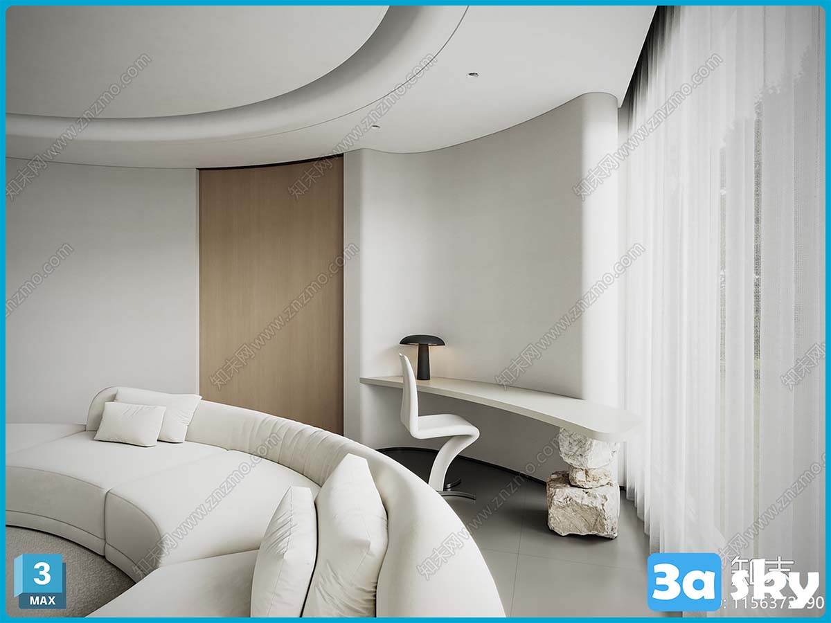 This 3D scene showcases a beautifully crafted interior design created using 3DS MAX. The attention to detail and realistic rendering make it a visually appealing piece. Explore the intricate architecture and design elements in this captivating scene.