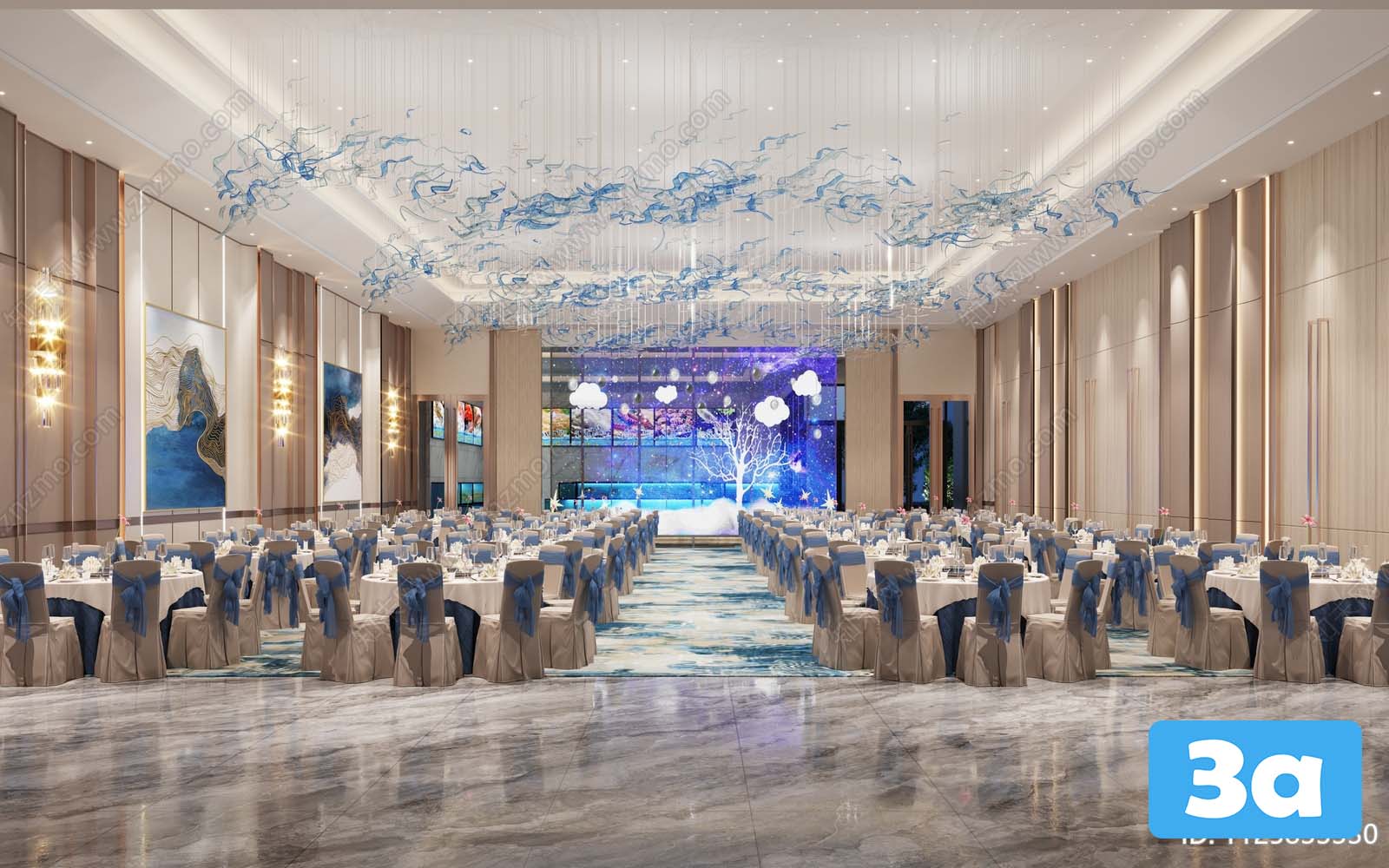 This 3D scene showcases a beautifully crafted interior design created using 3DS MAX. The attention to detail and realistic rendering make it a visually captivating piece. Explore the intricate architecture and design elements in this stunning visualization.