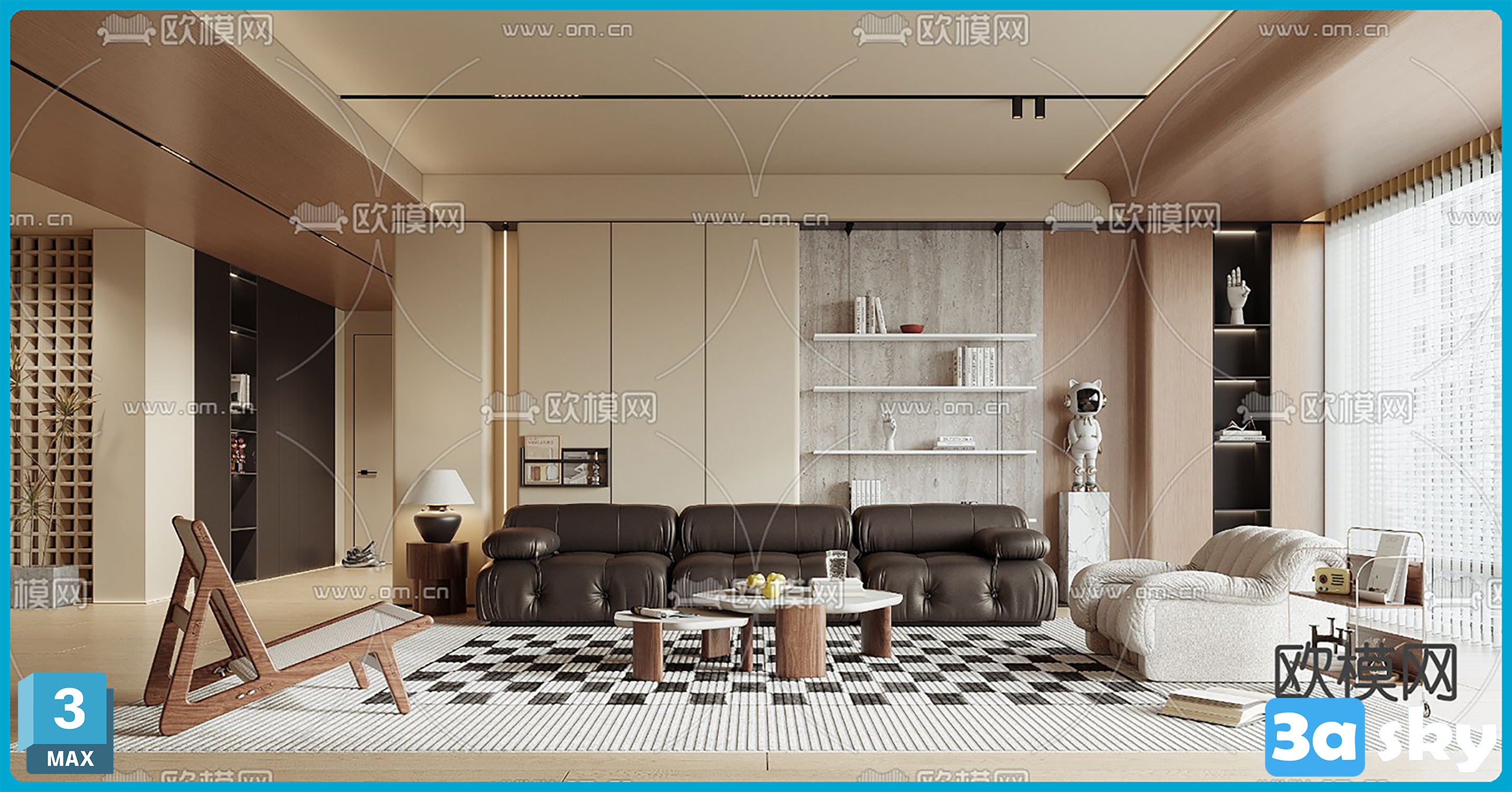 This 3D scene showcases a beautifully crafted interior design created using 3DS MAX. The attention to detail and realistic rendering make it a perfect example of architectural visualization. Explore the intricate elements and design features in this captivating 3D model.