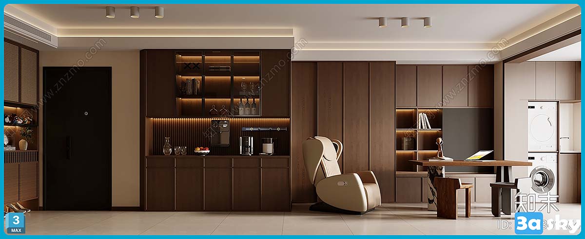 This 3D scene showcases a beautifully crafted interior design created using 3DS MAX. The scene features intricate details, realistic lighting, and a captivating overall aesthetic. Explore the world of 3D design and visualization with this stunning example.
