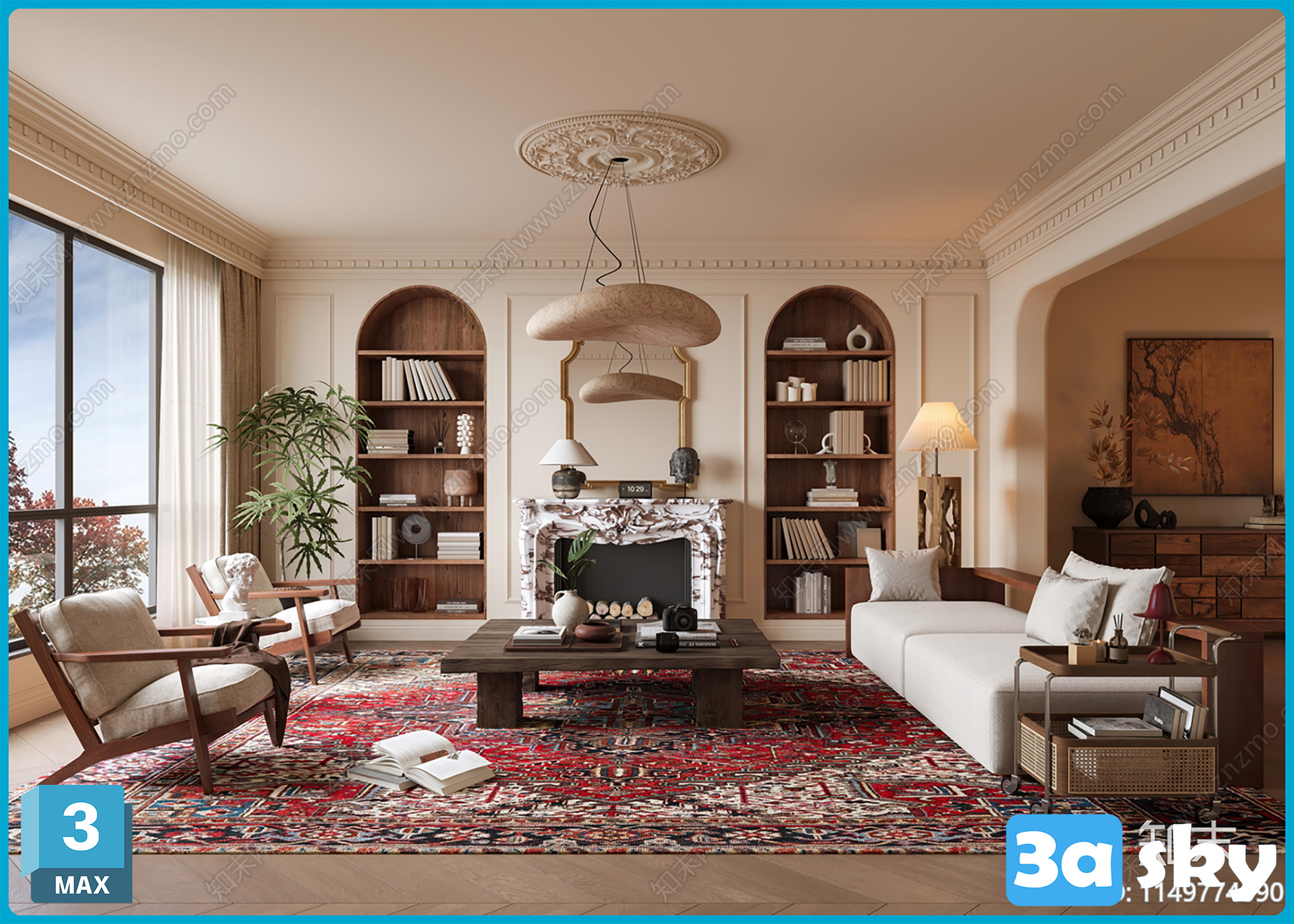 This 3D scene showcases a beautifully crafted interior design created using 3DS MAX. The attention to detail and realistic rendering make it a perfect example of architectural visualization. Explore the intricate elements and design features in this captivating 3D model.