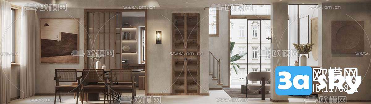 This 3D scene showcases a beautifully crafted interior design created using 3DS MAX. The attention to detail and realistic rendering make it a visually captivating piece. Explore the intricate architecture and design elements in this stunning 3D model.