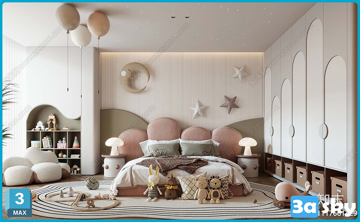V_现代女孩儿童房3D模型ID_1117661429.rar