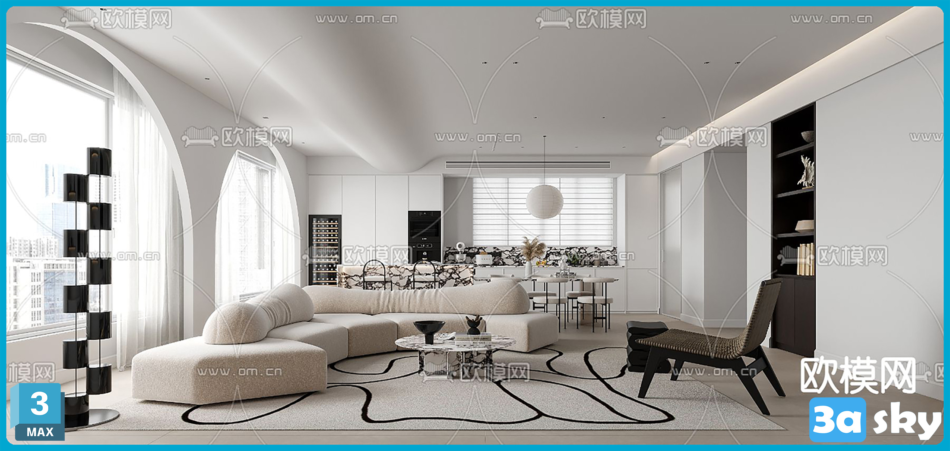 V_奶油风客厅餐厅3d模型ID-15034846.rar