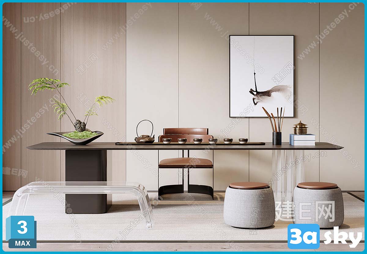 F_现代茶桌茶台3d模型ID-14259371.rar