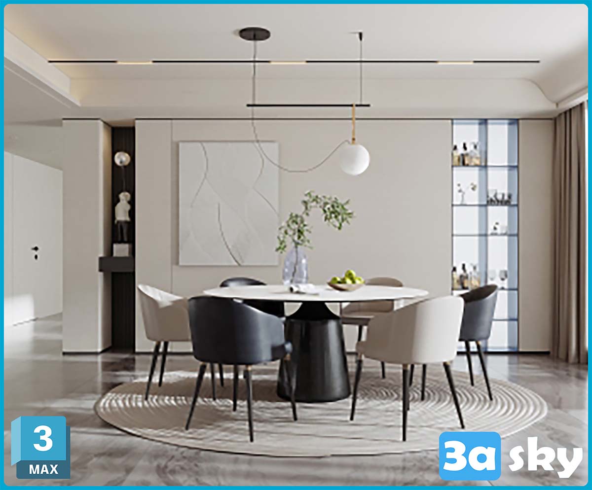 This 3D scene model in 3DS MAX features a beautifully crafted architectural design with realistic textures and intricate details. Perfect for showcasing interior design concepts or architectural visualization projects. The high quality 3D rendering highlights the attention to detail and creativity put into creating this stunning scene.