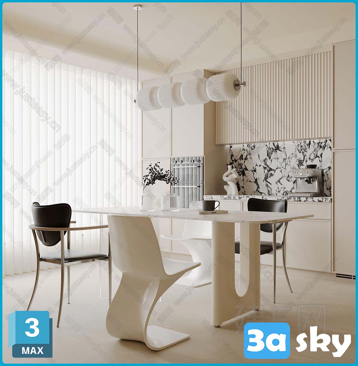 This 3D scene model was created using 3DS MAX, showcasing a detailed and realistic architectural visualization. The scene includes intricate details and textures, perfect for interior design and architectural projects.